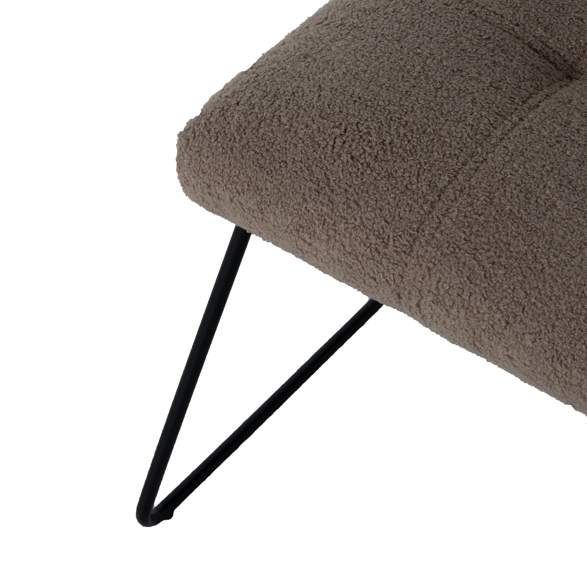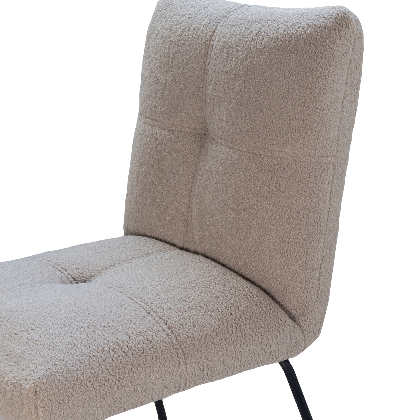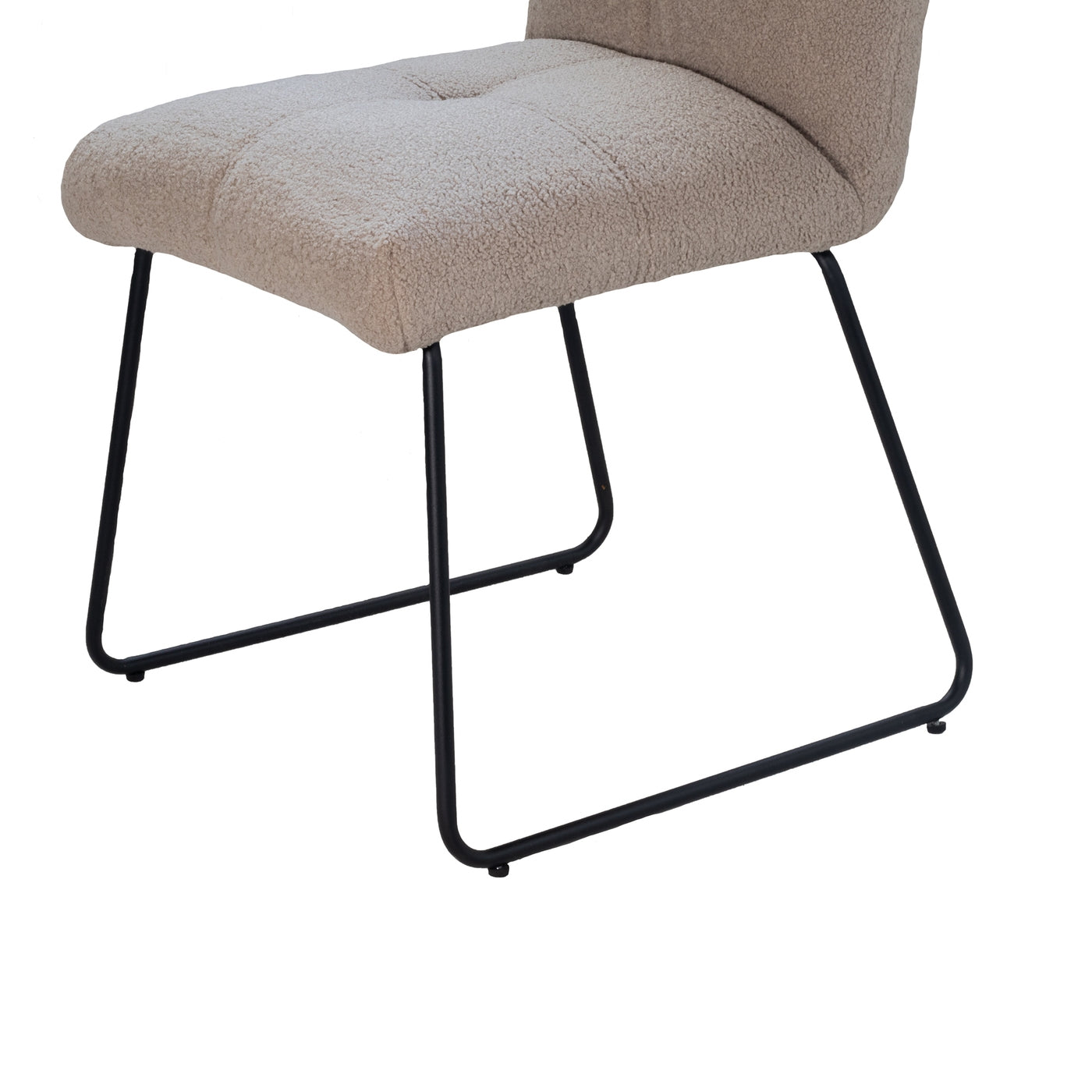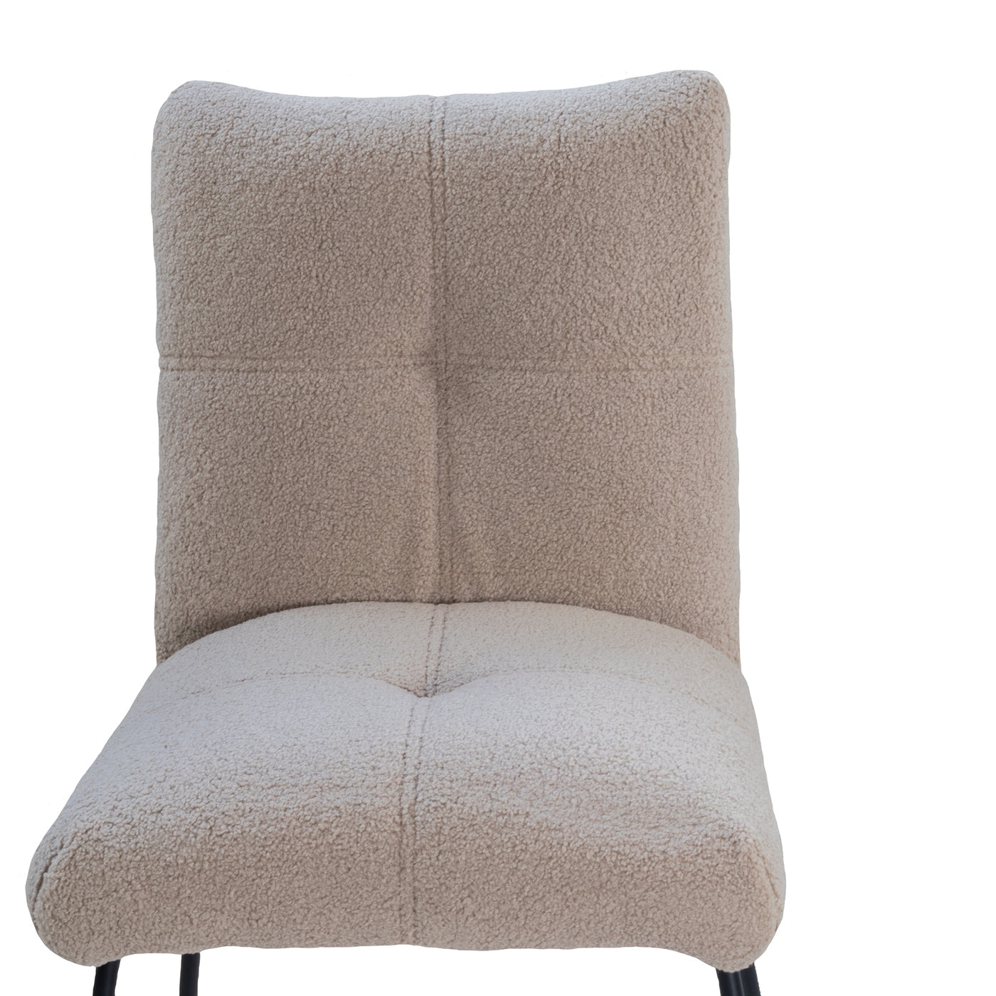 Materiaal: De zitting van de Felice stoel is bekleed met zacht teddy materiaal, wat zorgt voor een comfortabele en knusse zitervaring. Het onderstel is gemaakt van stevig metaal, wat de stoel een robuuste en duurzame basis geeft. Deze combinatie van materialen maakt de stoel zowel stijlvol als functioneel.