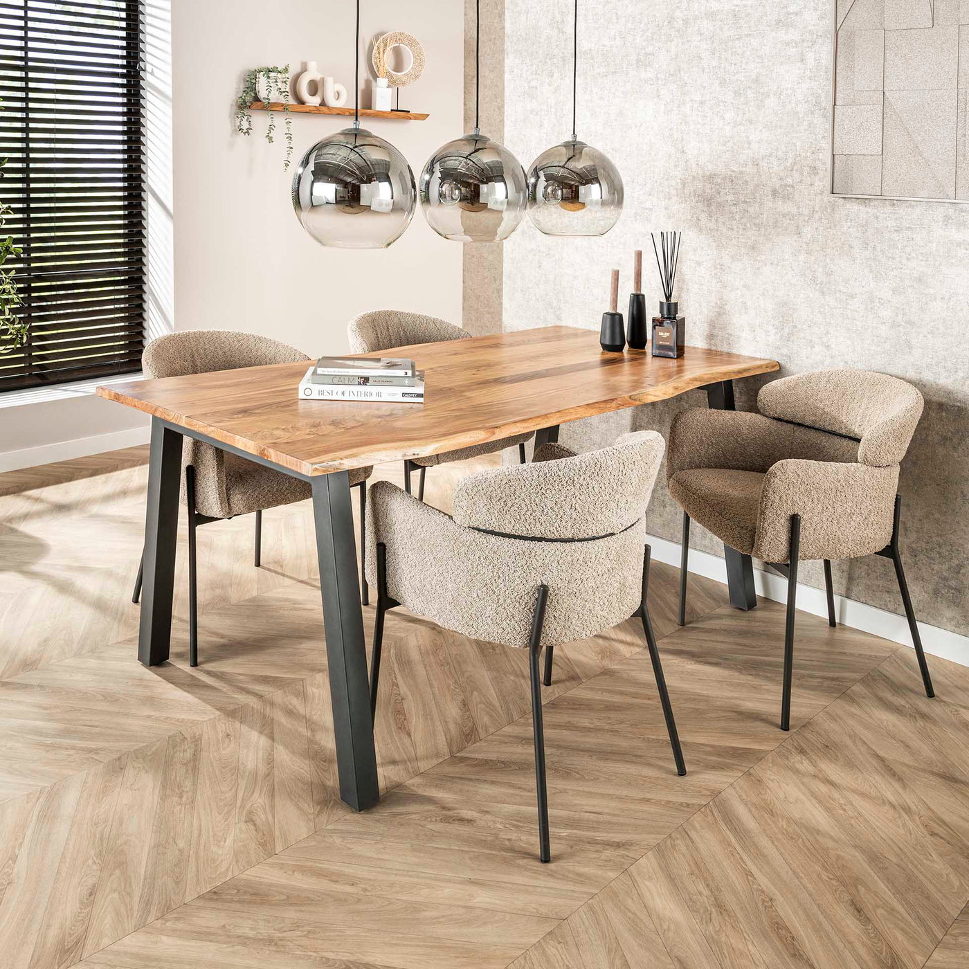 Armstoel Ronde Rug Bouclé Zand - Giga Meubel