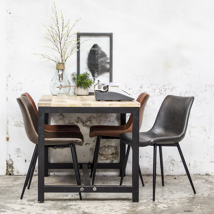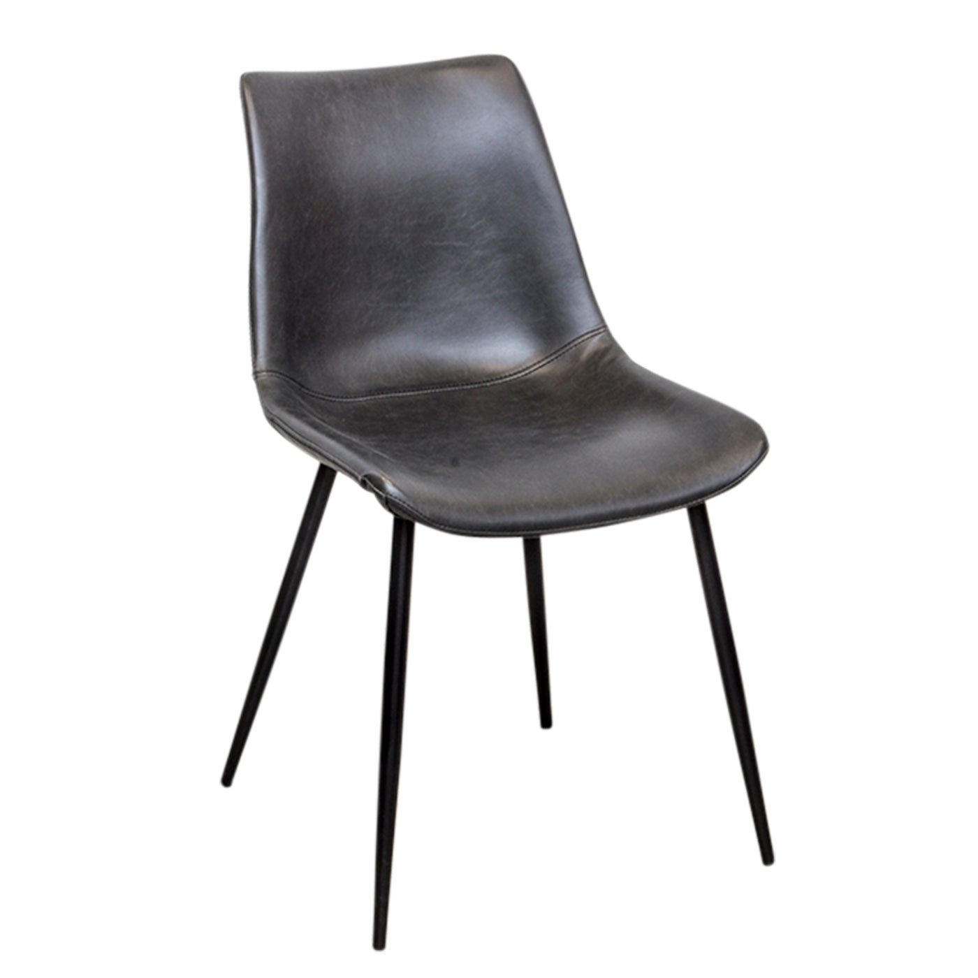 - De zitting is gemaakt van zwart PU-leer en de stoel heeft een onderstel van zwart metaal.