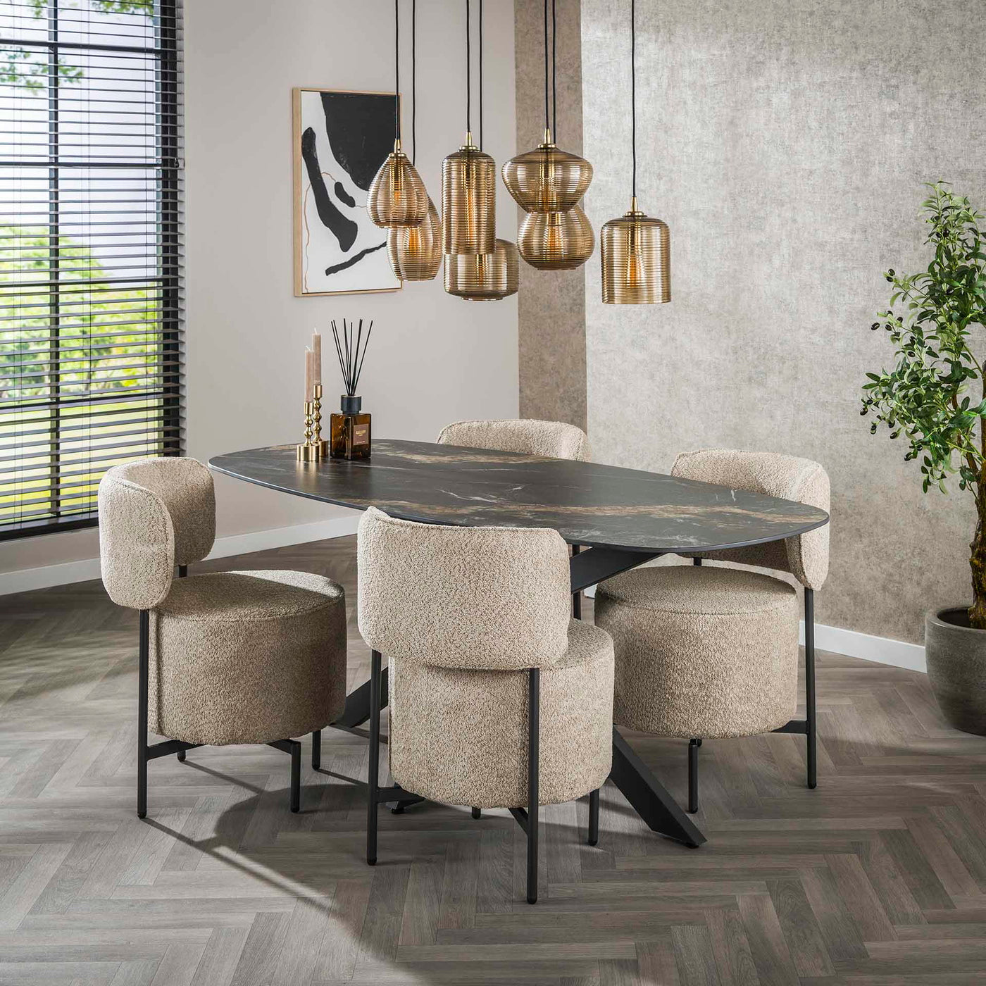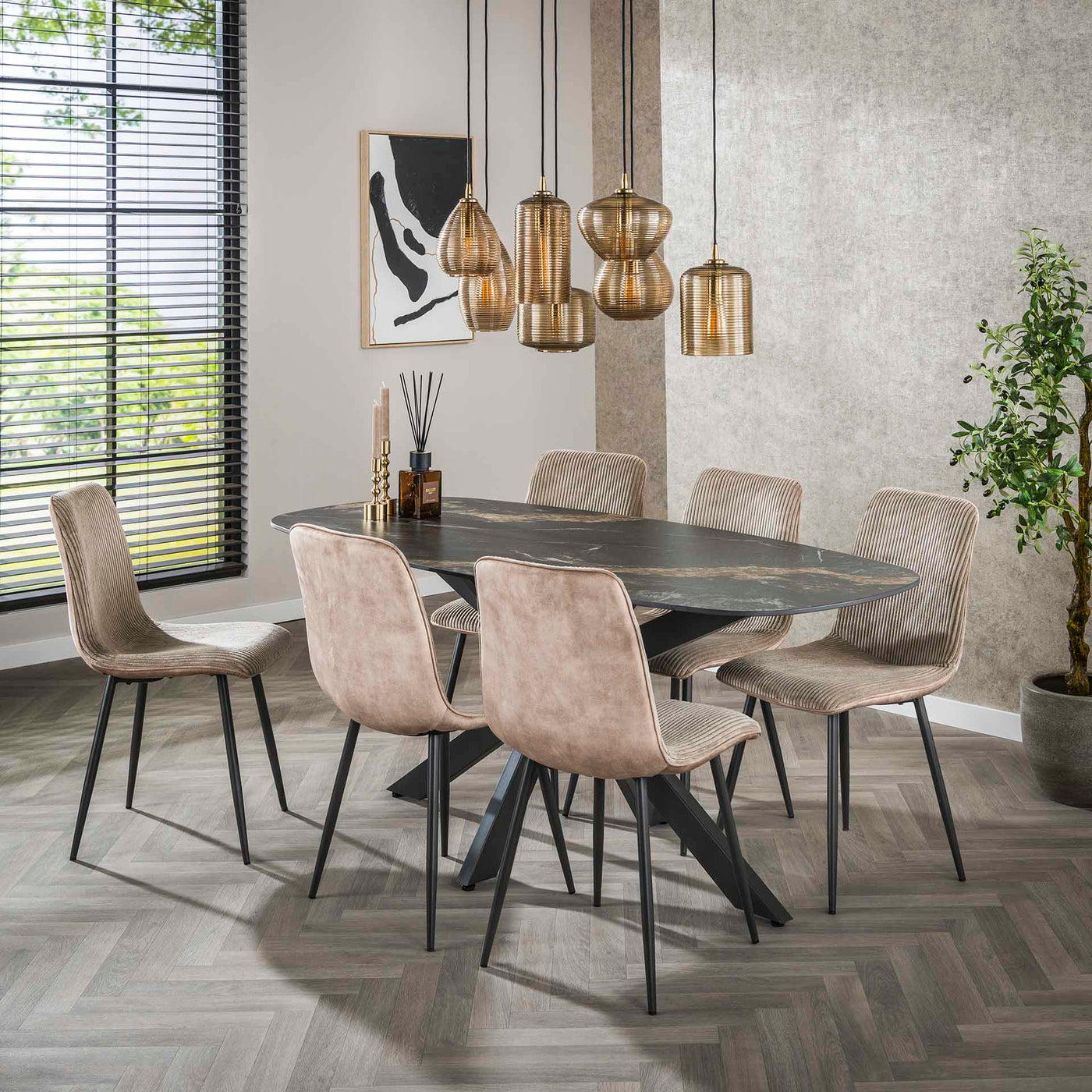 Eetkamertafel Ceramic Fossil Deens Ovaal Zwart 180cm - Giga Meubel