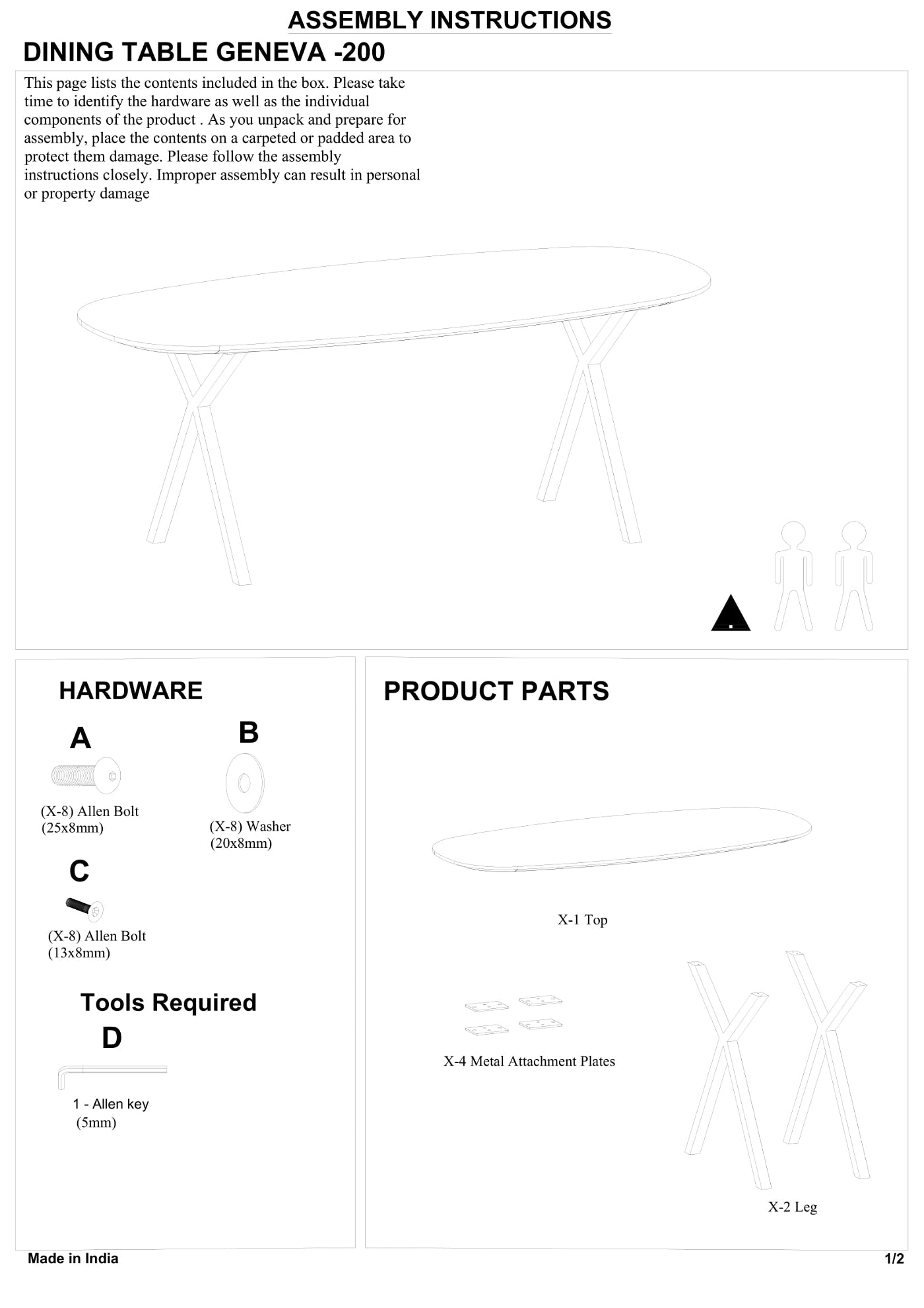 - Het onderstel van de tafel bestaat uit twee X-poten.