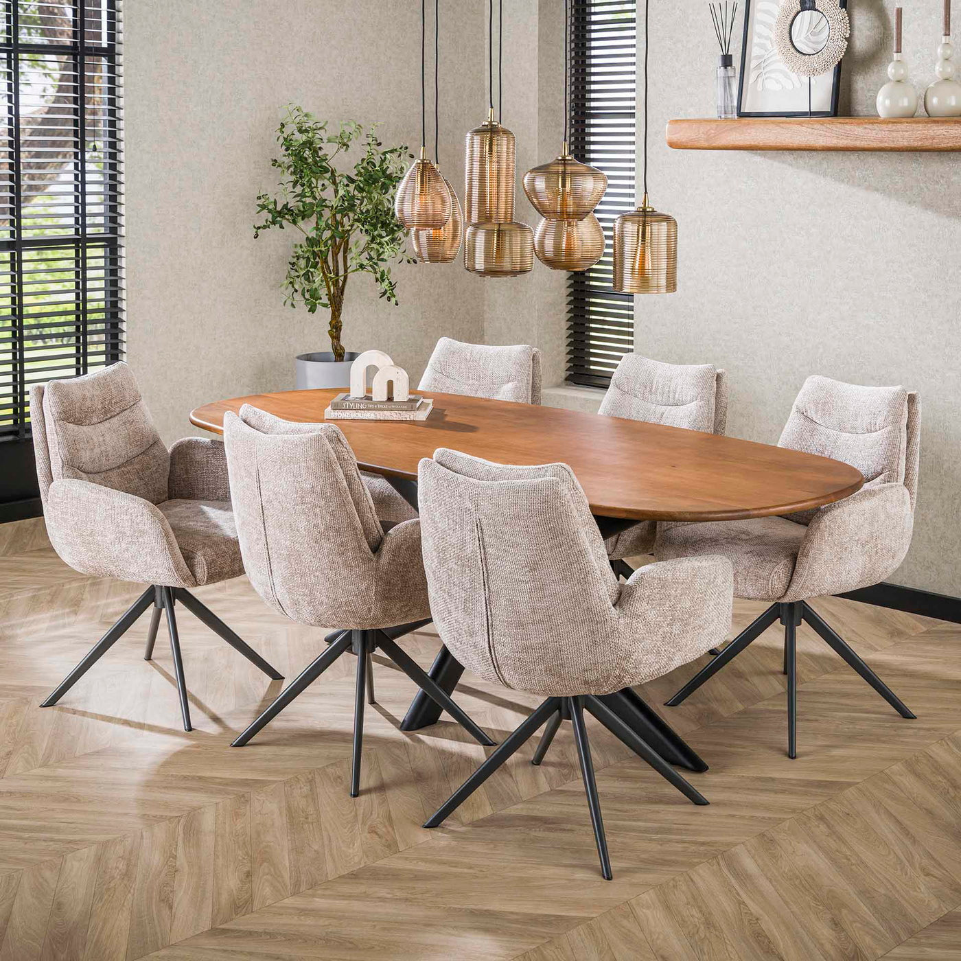 Eettafel Cliff Deens Ovaal Mangohout 180cm - Giga Meubel