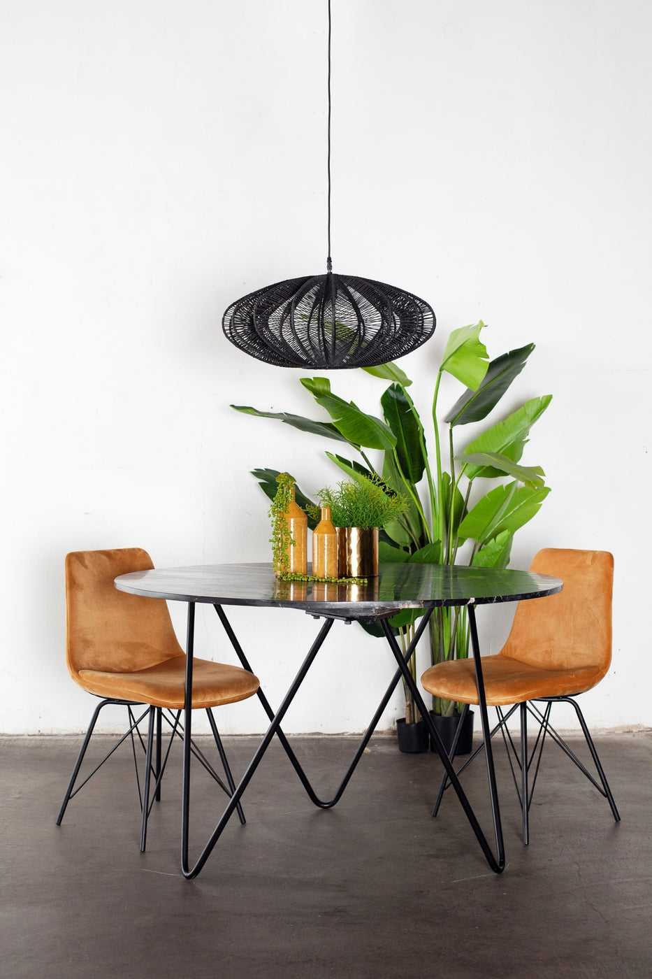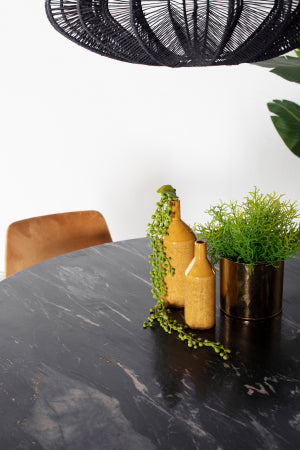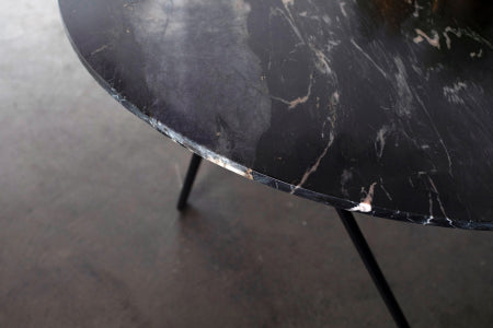 - Het zwarte ijzeren onderstel zorgt voor een stevige basis en laat het marmeren blad goed uitkomen.