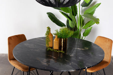 - Niets is gezelliger dan een ronde tafel. Eettafel Coco heeft een prachtig zwart marmeren tafelblad.