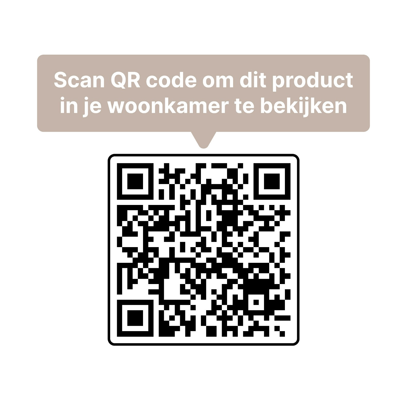 Richt de camera van je mobiele telefoon of tablet op de QR-code. Klik de link aan die in beeld verschijnt en het product wordt virtueel in je eigen huis geplaatst. Zo weet je zeker of het bij je past.