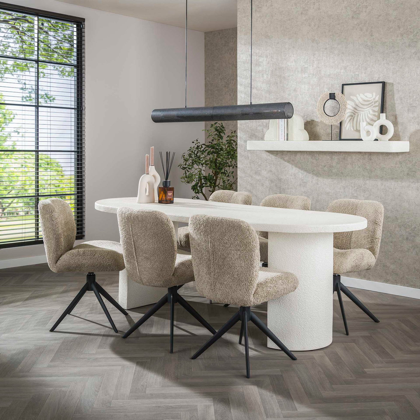 De Eettafel Arch Stone van 215 cm van Giga Meubel is een prachtige toevoeging aan jouw interieur. Deze tafel combineert de minimalistische Japandi-stijl met de luxe uitstraling van marmer composiet. Het witte tafelblad en onderstel zorgen voor een frisse en moderne look, terwijl de hoogwaardige materialen garant staan voor duurzaamheid en kwaliteit. Deze eettafel is perfect voor gezellige diners met familie en vrienden en zal zeker een eyecatcher zijn in jouw eetkamer.