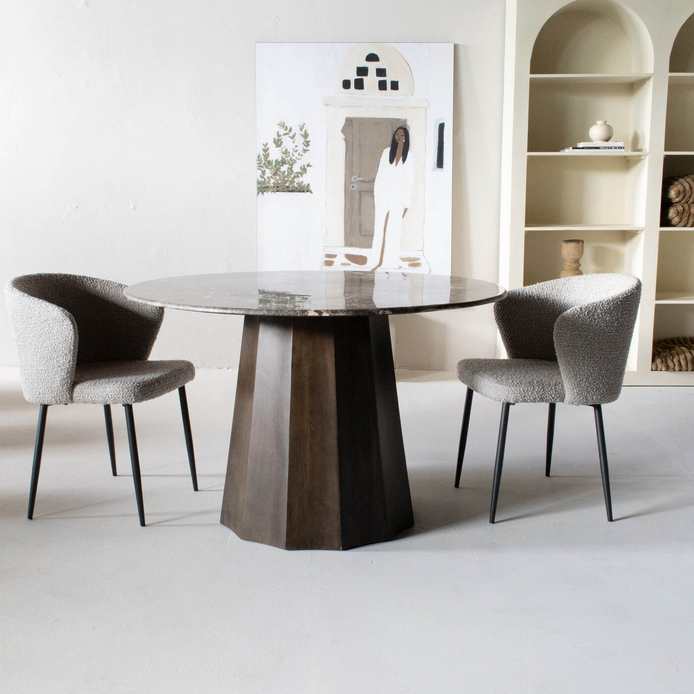 Ontdek de charme van de Eettafel Senna, een perfecte toevoeging aan elk Scandinavisch interieur. Deze tafel combineert de natuurlijke schoonheid van marmer met de warmte van mangohout, gecreëerd in een stijlvolle bruine kleur. De kwaliteit en het unieke ontwerp maken het niet alleen een praktisch meubelstuk voor dagelijks gebruik, maar ook een echte eyecatcher in je eetkamer. Het ronde ontwerp zorgt voor een gezellige sfeer waar iedereen graag aan plaatsneemt.
