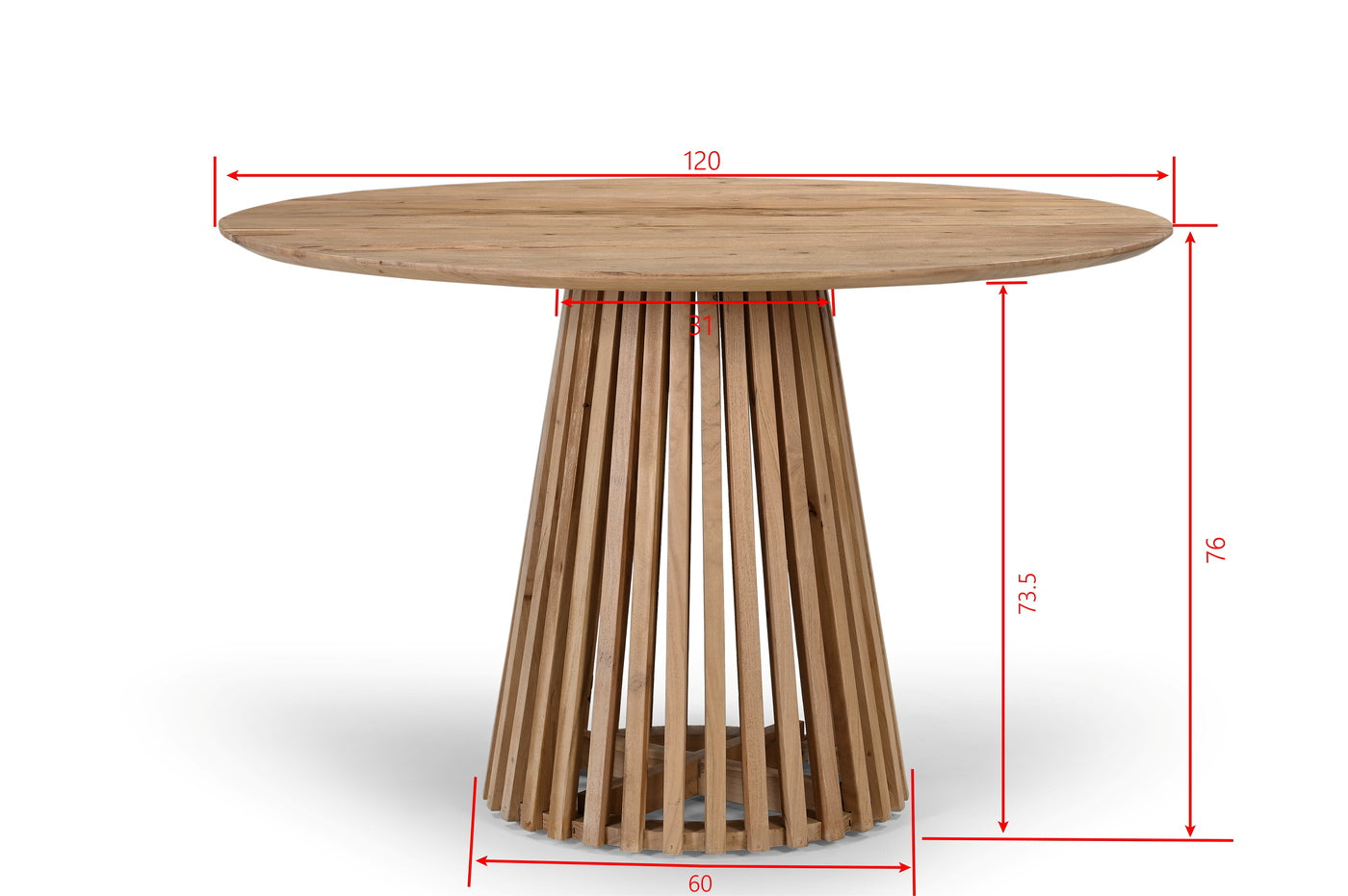 Met zijn royale afmetingen biedt de Eettafel Seppe voldoende ruimte voor gezellige diners en bijeenkomsten. Je kunt de Eettafel Seppe Naturel Rond 120cm Acaciahout.