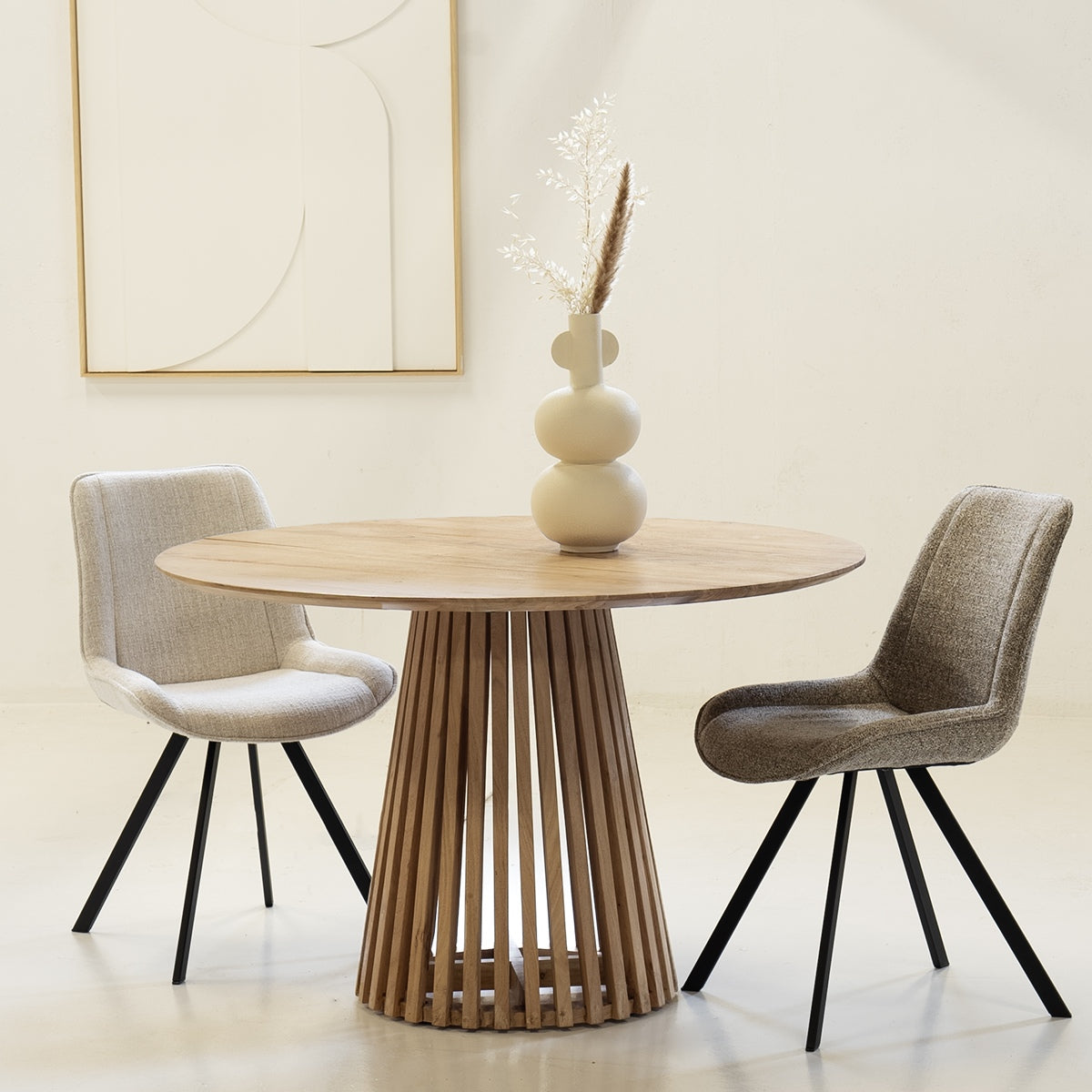 De Eettafel Seppe Naturel Rond 120cm van Giga Meubel is een prachtige toevoeging aan je interieur. Deze tafel combineert de serene Japandi-stijl met de warme uitstraling van acaciahout. Het natuurlijke kleurenschema zorgt voor een rustige en uitnodigende sfeer in je eetkamer. De hoogwaardige afwerking en het robuuste materiaal maken deze tafel niet alleen een eyecatcher, maar ook een duurzame keuze voor dagelijks gebruik.