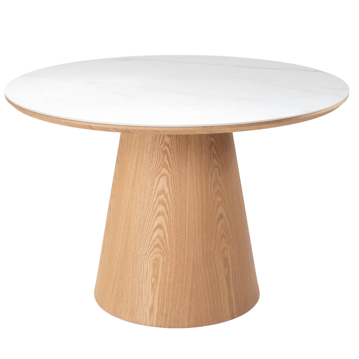 Giga Meubel - Eettafel Wit Keramiek|Naturel - Ø115x77cm - Alba