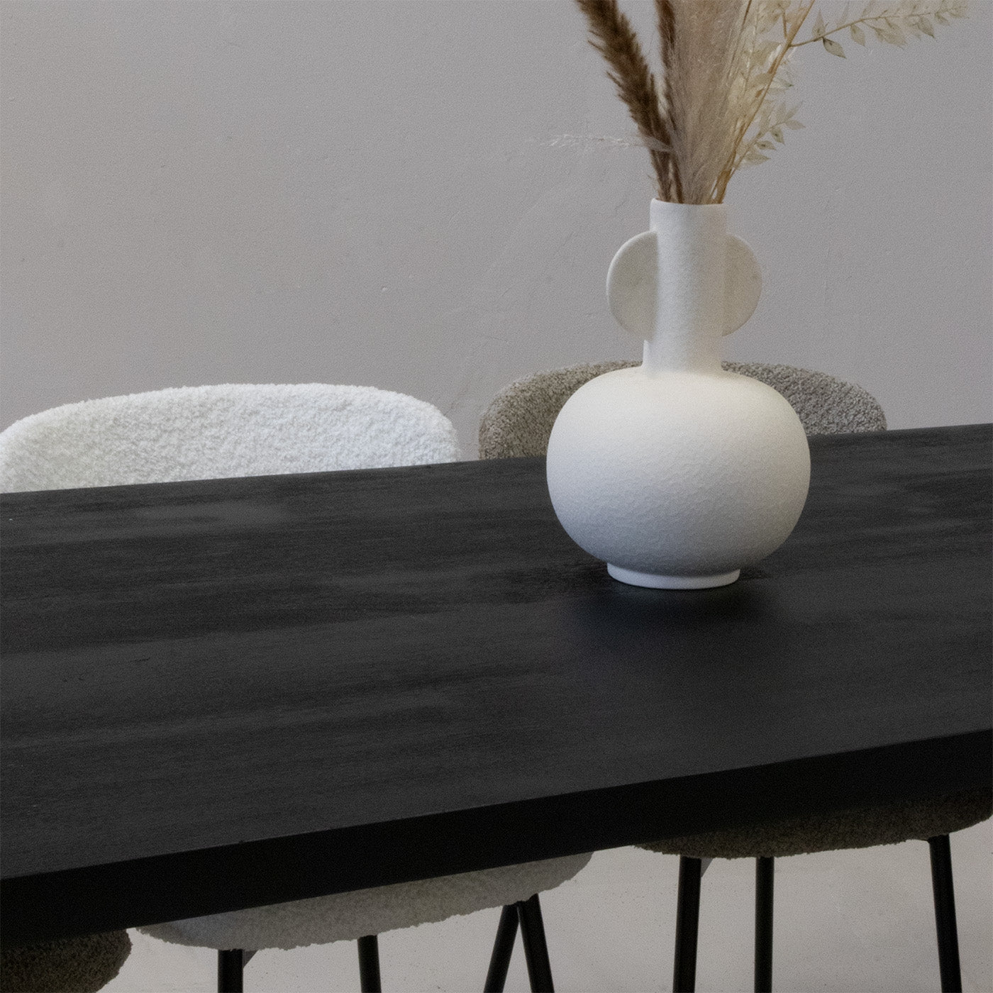 Ontdek de Eettafel Lavin Zwart 220cm, een prachtige toevoeging aan elke eetkamer die de Hotel Chique stijl belichaamt. Vervaardigd uit hoogwaardig mangohout, biedt deze tafel niet alleen een stijlvolle uitstraling met zijn zwarte kleur, maar staat ook garant voor duurzaamheid en kwaliteit. De mat gelakte afwerking van het tafelblad zorgt voor een subtiele glans en gemakkelijk onderhoud, waardoor deze tafel perfect is voor dagelijks gebruik.