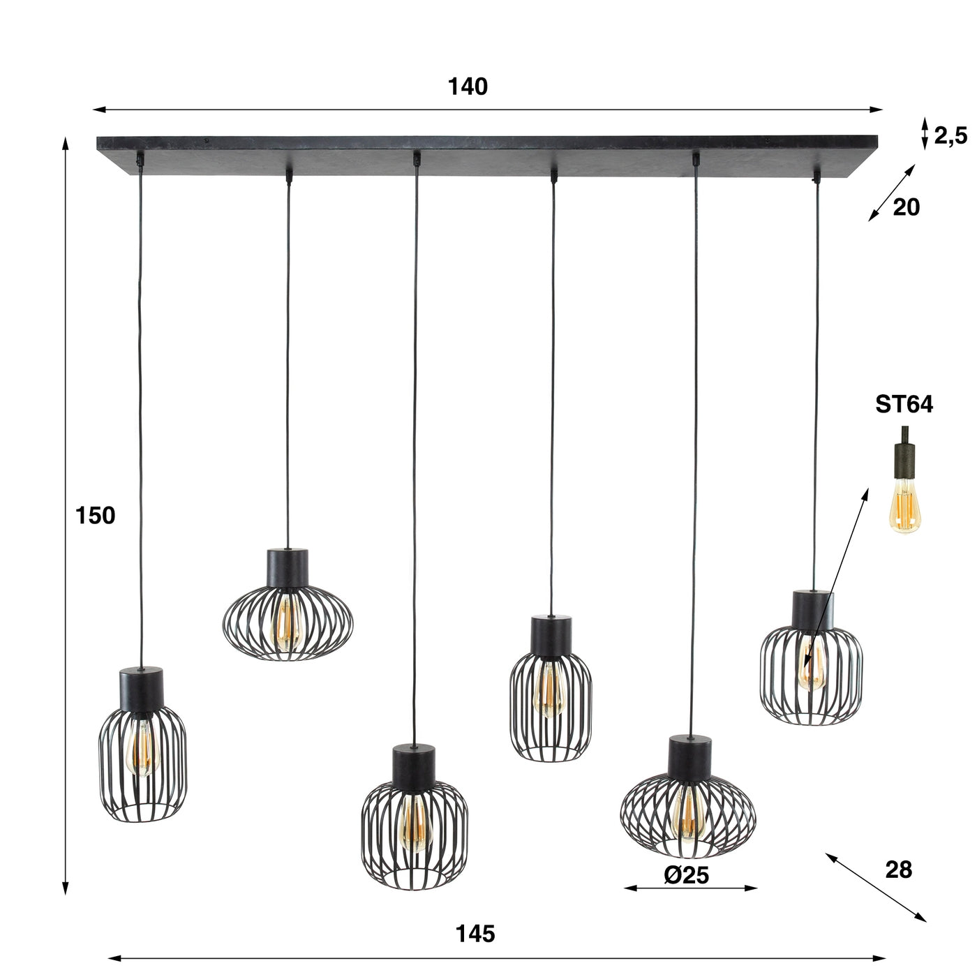 Materiaal: Deze hanglamp is vervaardigd uit hoogwaardig metaal, wat zorgt voor een robuuste en duurzame constructie. Het metaal geeft de lamp een industriële uitstraling en maakt hem geschikt voor diverse interieurstijlen.