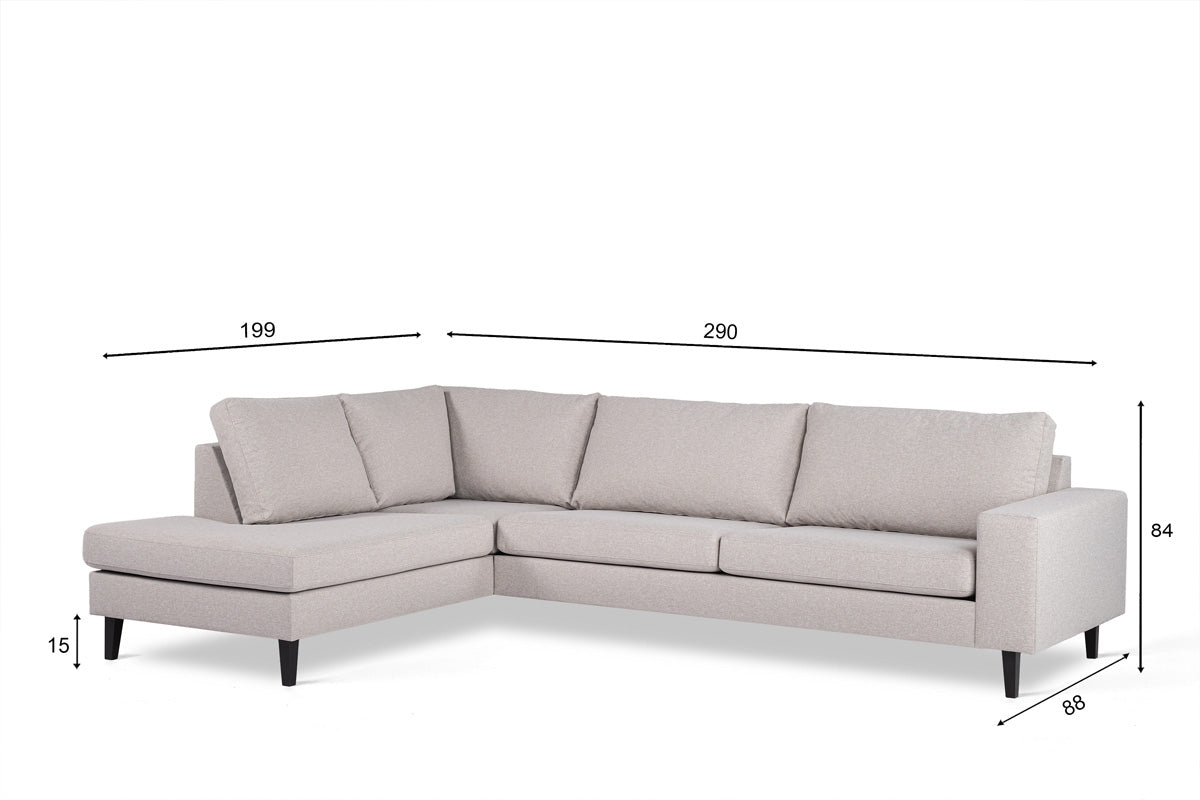 Materiaal: De 3-Zits Hoekbank is vervaardigd uit een combinatie van hout en stof. Het houten frame biedt een stevige basis, terwijl de stoffen bekleding zorgt voor een zachte en comfortabele zitervaring. Deze materialen zijn zorgvuldig gekozen voor hun duurzaamheid en esthetische waarde.