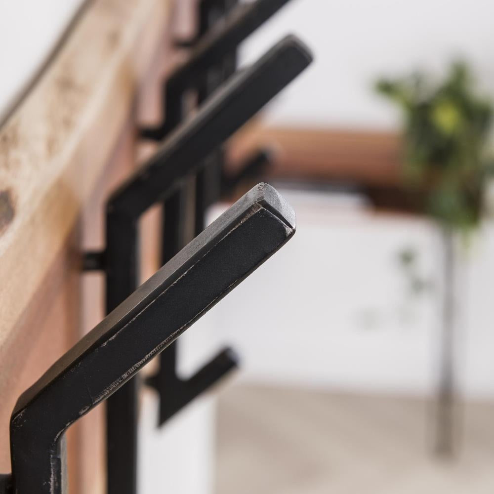 Materiaal: De kapstok is vervaardigd uit een combinatie van metaal en acaciahout. Het metaal zorgt voor een stevige constructie, terwijl het acaciahout een warme en natuurlijke uitstraling geeft. Deze combinatie maakt de kapstok zowel sterk als stijlvol.