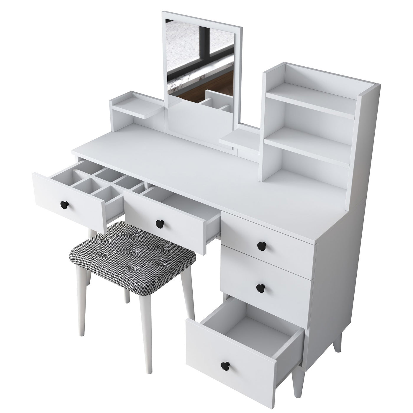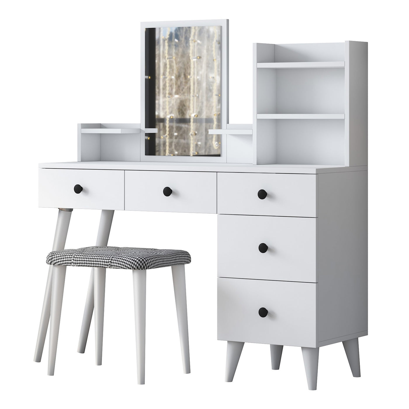 Ben je het zat om elke ochtend te zoeken naar je make-up en beautybenodigdheden? Zeg vaarwel tegen de chaos en hallo tegen een meer georganiseerd en glamoureus begin van je dag met onze prachtige make-up tafel. Ontworpen met zowel functionaliteit als stijl in gedachten, is deze tafel de perfecte aanvulling voor elke slaapkamer of kleedruimte.