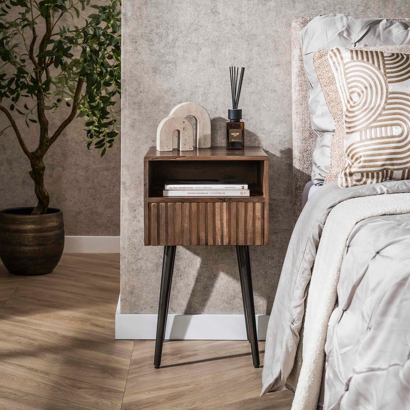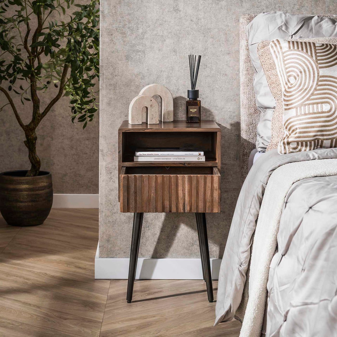 Nachtkastje Carve 1 Lade Massief Acacia Bruin - Giga Meubel