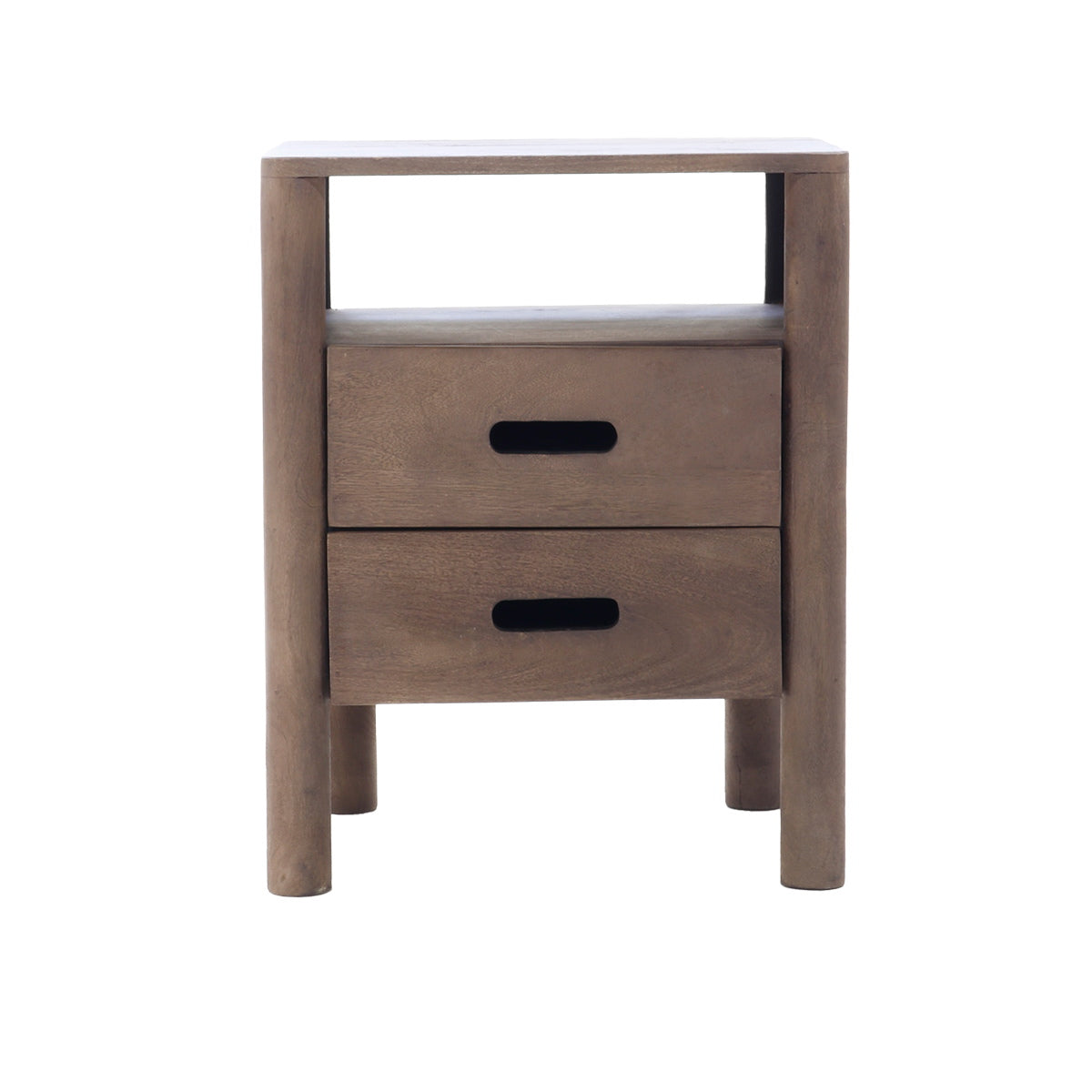 Materiaal: Het nachtkastje is gemaakt van mangohout, een duurzaam materiaal dat bekend staat om zijn stevigheid en unieke houtnerfpatronen. Mangohout is een milieuvriendelijke keuze, omdat het afkomstig is van snelgroeiende bomen.