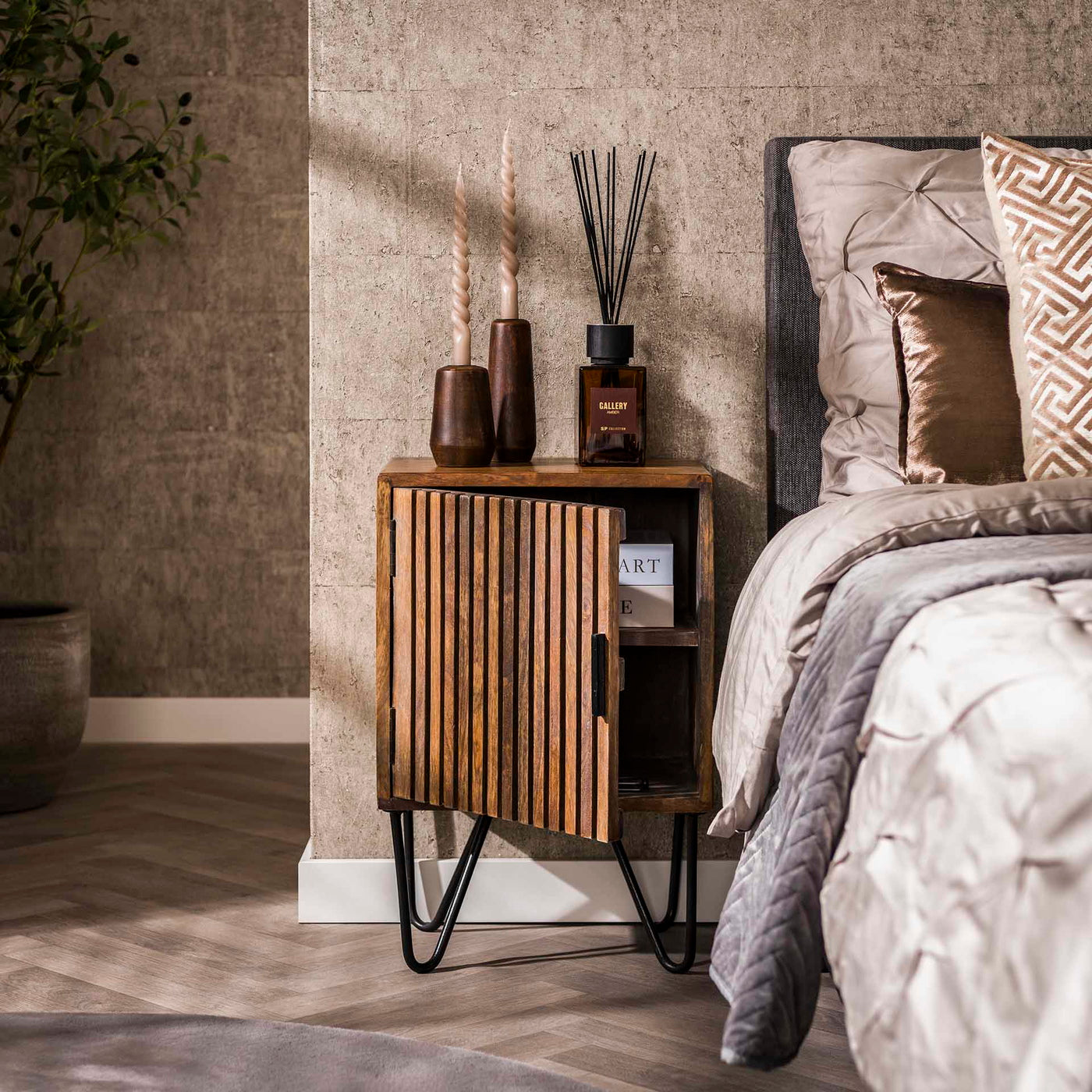 Materiaal: Deze nachtkastjes zijn vervaardigd uit massief mangohout en metaal. Mangohout staat bekend om zijn duurzaamheid en robuuste karakter, terwijl het metaal zorgt voor een stevige constructie. Deze combinatie maakt de nachtkastjes niet alleen functioneel maar ook een eyecatcher in je slaapkamer.