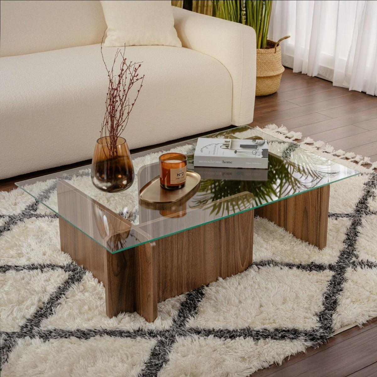 Giga Meubel - Salontafel Glas|Walnoot - 105x65x30cm - Flavio