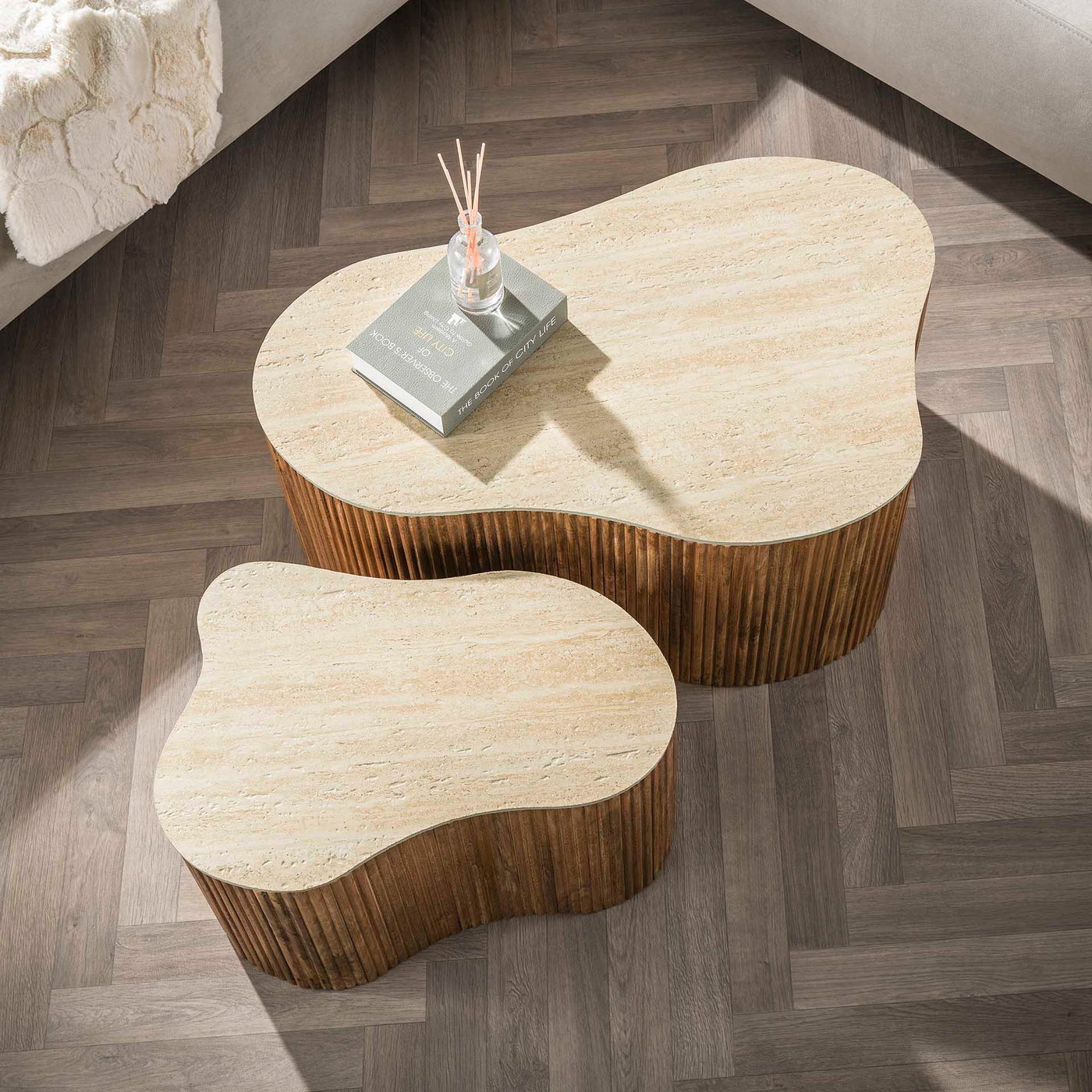 Salontafel Nuovo Shamrock Set van 2 Massief Mango Zand - Giga Meubel