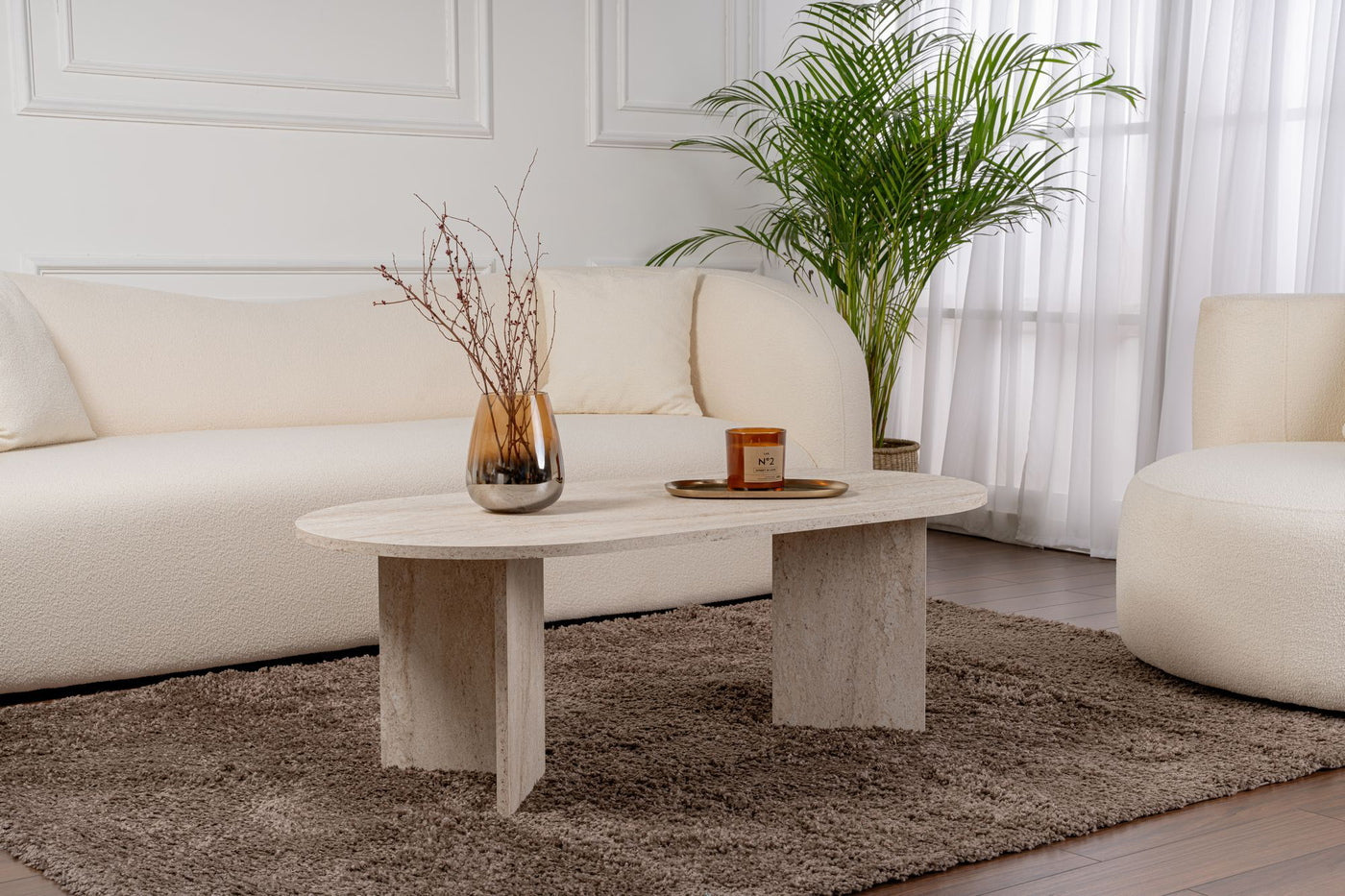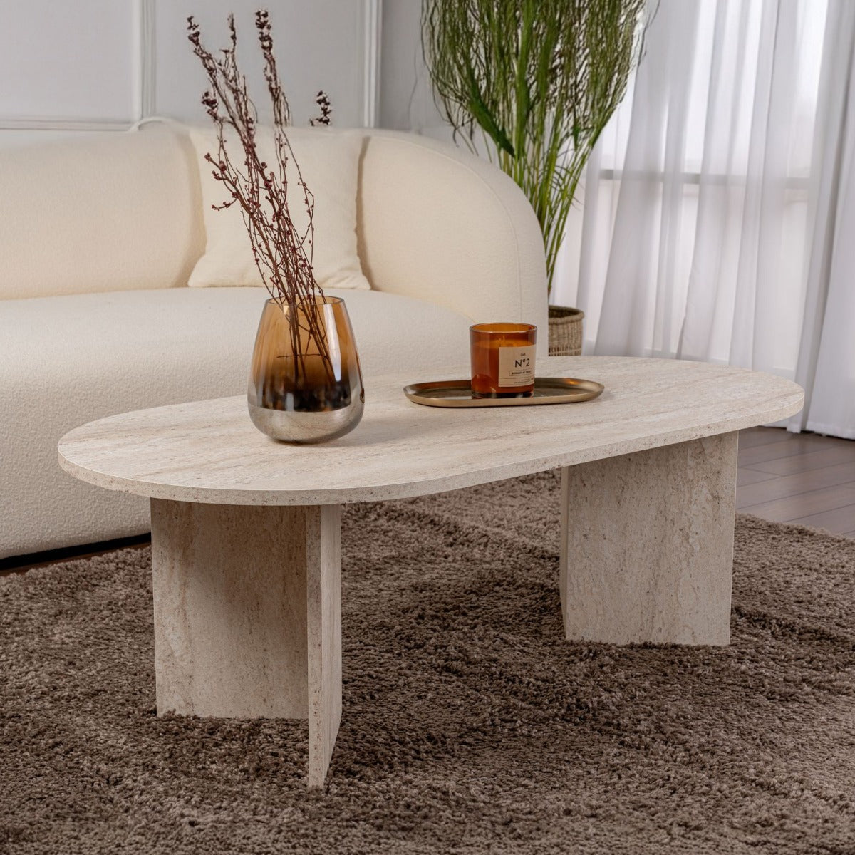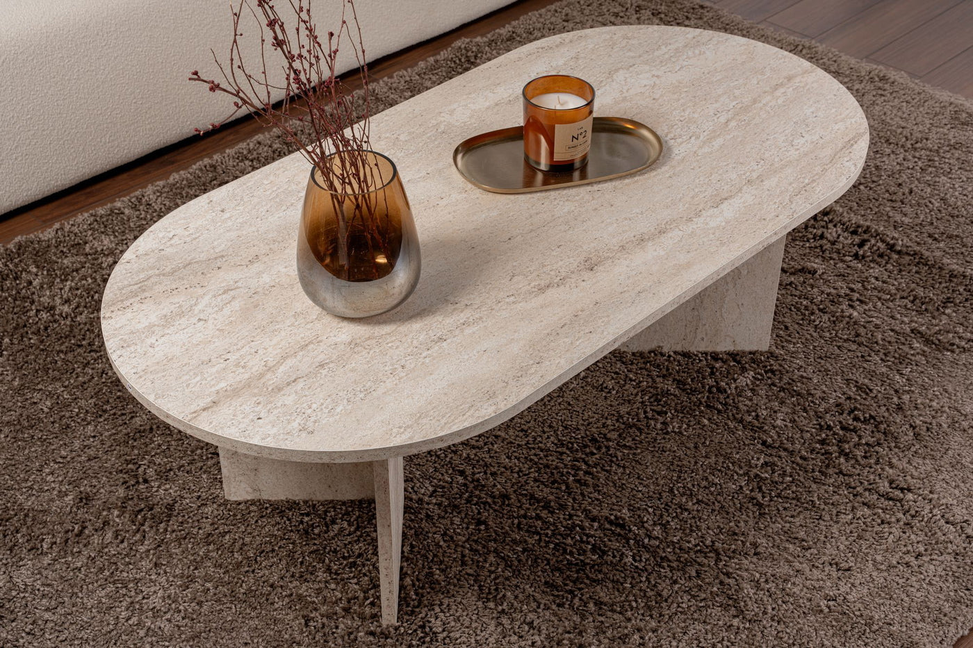 Giga Meubel - Salontafel Ovaal Travertinlook - 119x60x40cm - Sable