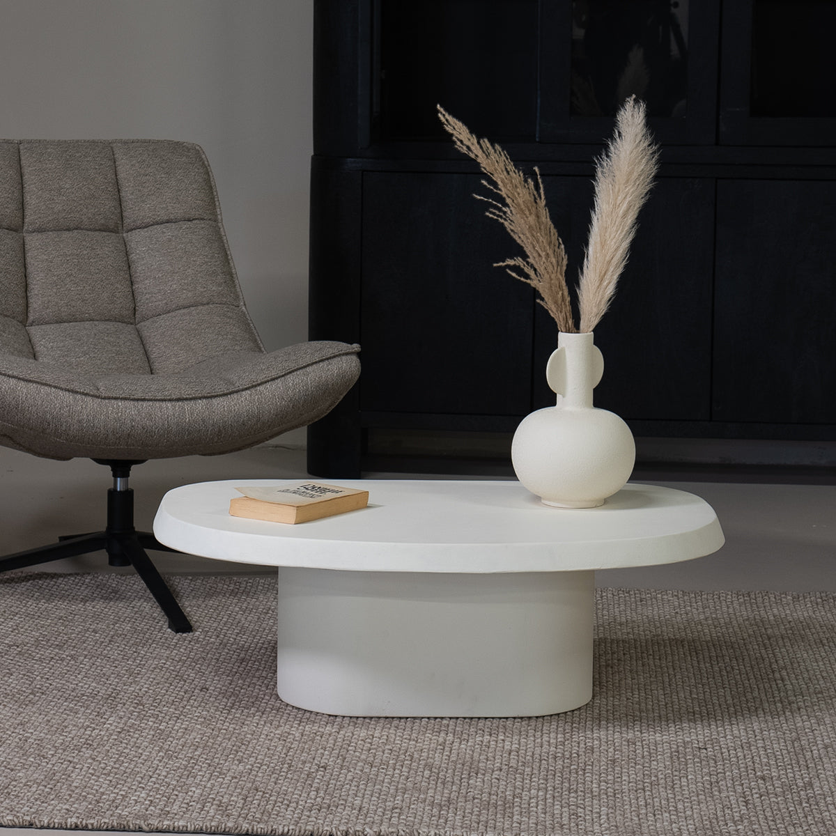 Materiaal: De Salontafel Carly is vervaardigd uit een combinatie van beton en MDF. Deze materialen zorgen voor een stevige constructie en een lange levensduur. Beton geeft de tafel een industriële look, terwijl MDF zorgt voor een glad en strak oppervlak.
