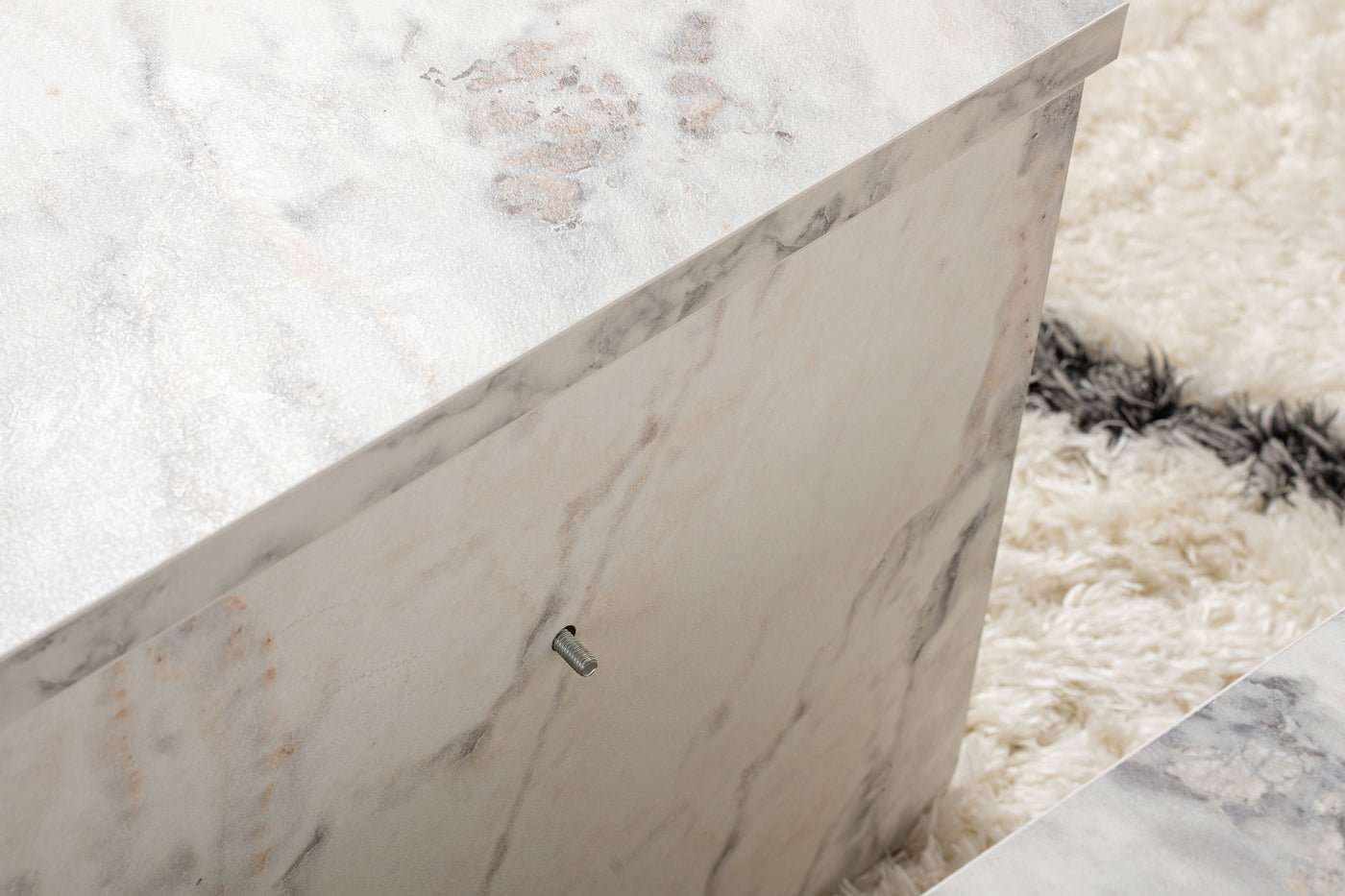 Het strakke ontwerp en de prachtige marmeren afwerking van deze salontafel zullen de uitstraling van je woonkamer direct verbeteren. De moderne en chique esthetiek zal indruk maken op je gasten en een stijlvolle sfeer creëren in je huis.