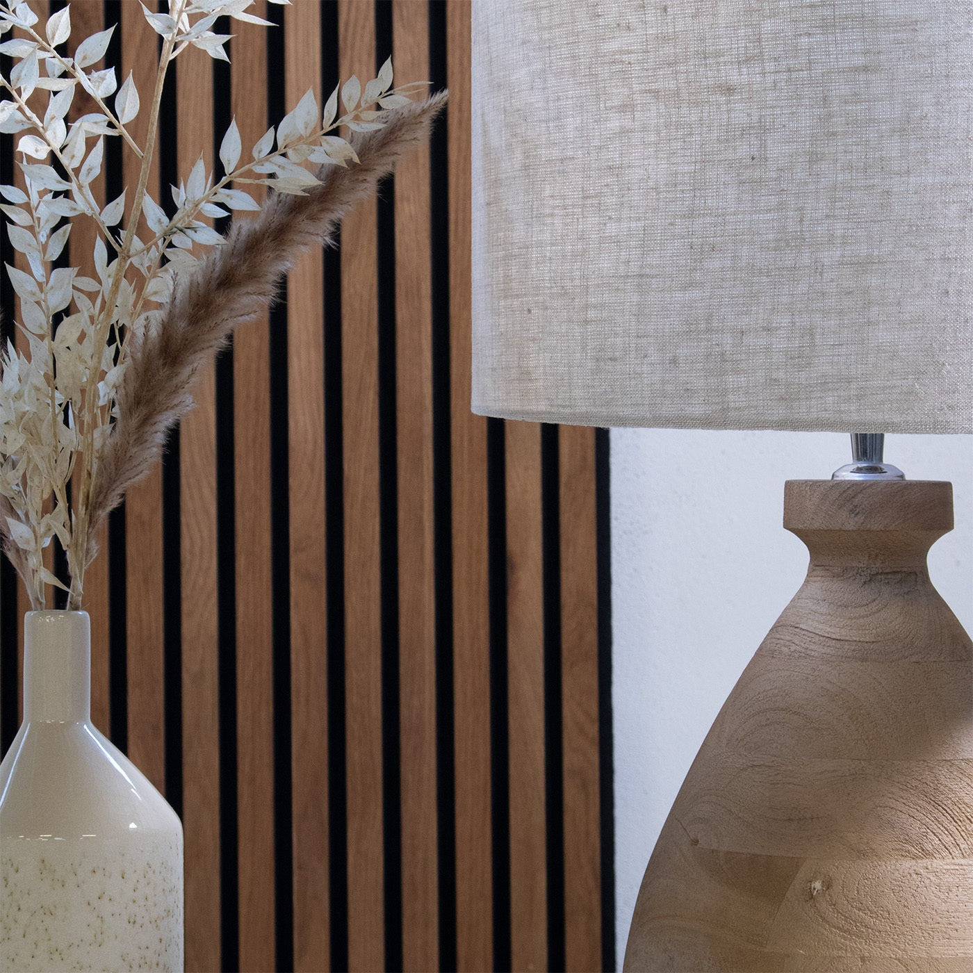 - Combineert hout en linnen voor een unieke look.