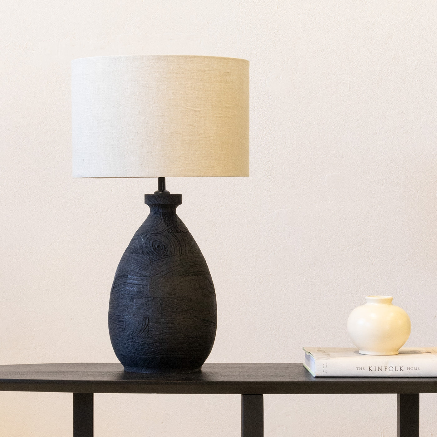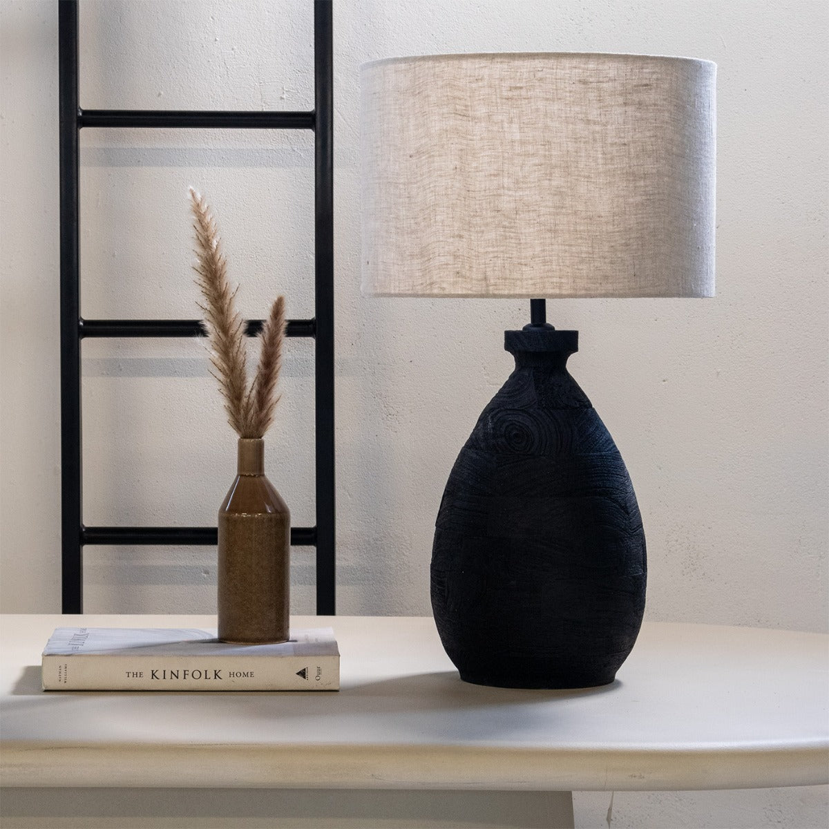 Tafellamp Mattia Zwart Hout 35cm - Giga Meubel