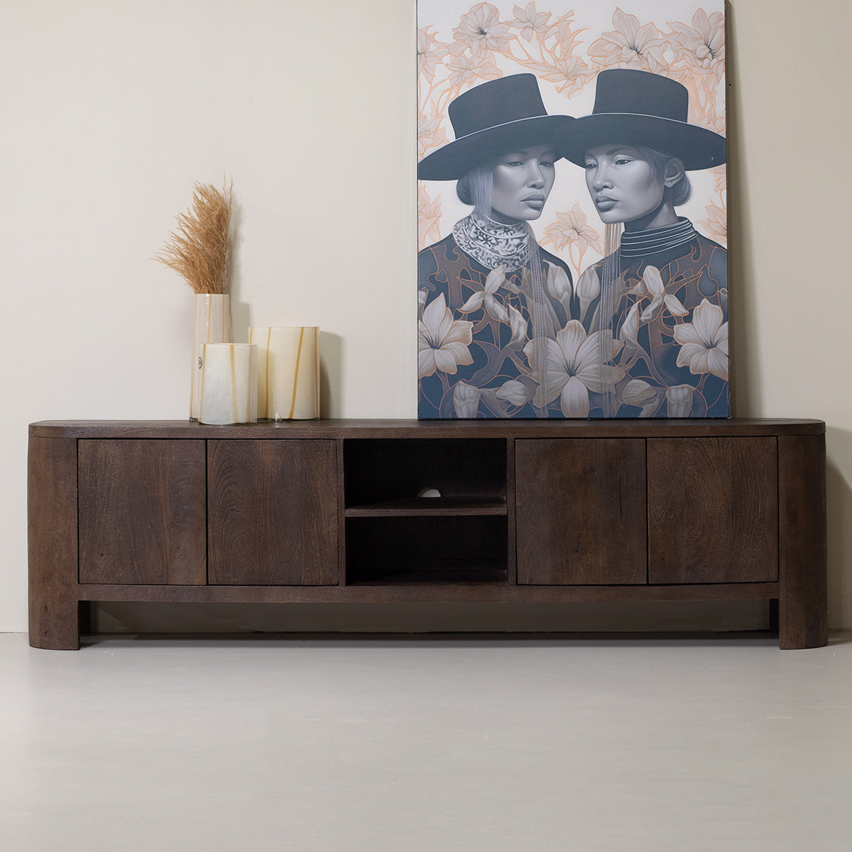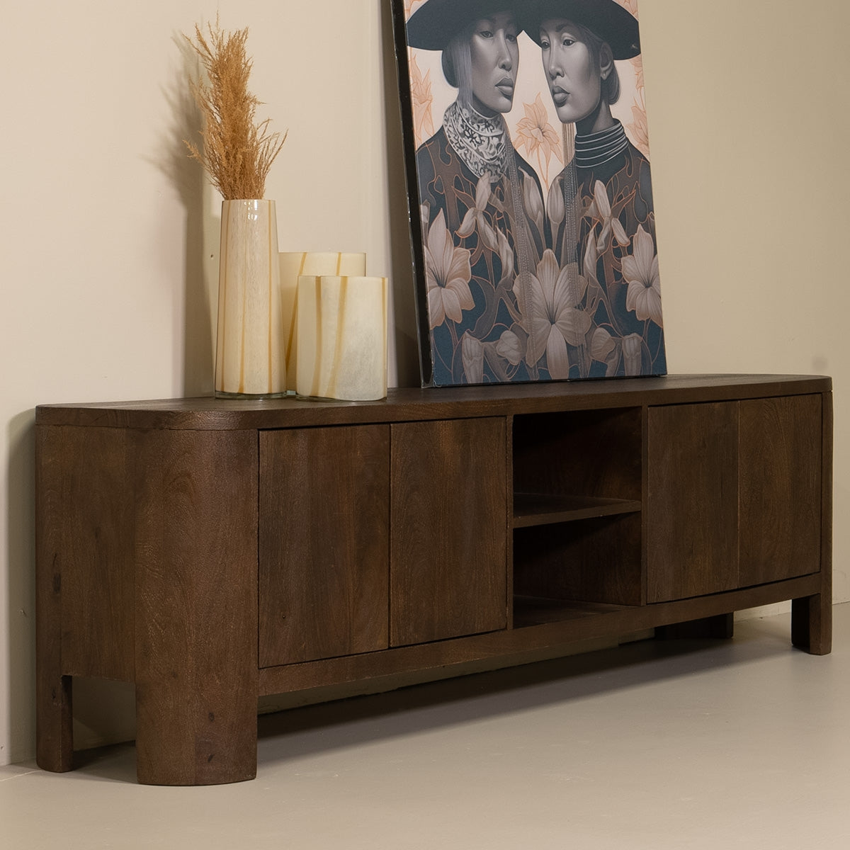 Tv-meubel Mitchel Donkerbruin 200cm Mangohout - Giga Meubel