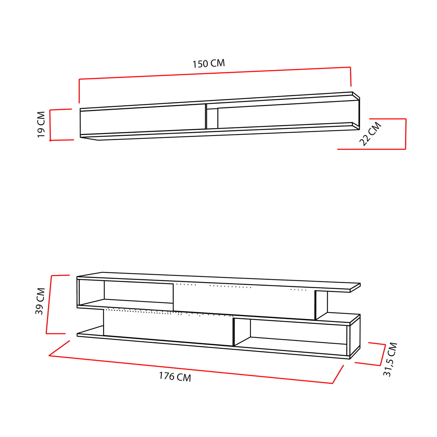 Materiaal: Het Tv-Meubel Sims is gemaakt van spaanplaat en melamine. Dit materiaal staat bekend om zijn stevigheid en duurzaamheid, waardoor je jarenlang plezier zult hebben van dit meubelstuk. Bovendien is melamine eenvoudig te onderhouden en schoon te maken.