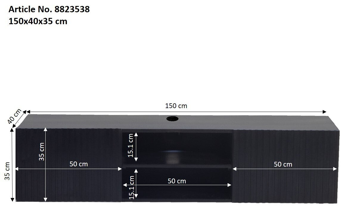 Zwevend Tv-meubel Roman Zwart 150cm - Giga Meubel