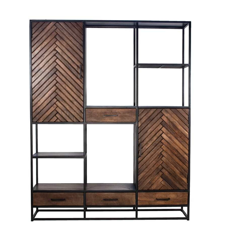 Giga Meubel - Vakkenkast Bruin Visgraat - Mangohout - Kast Isa Groot