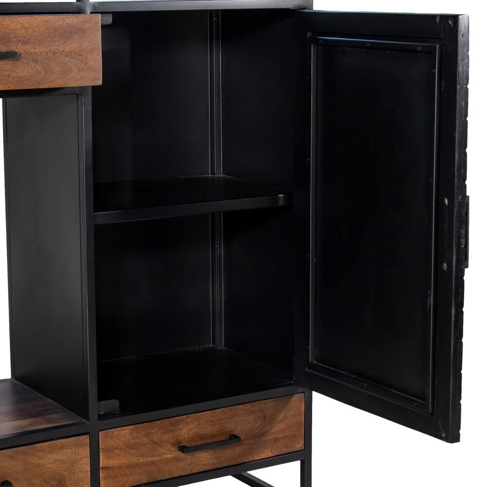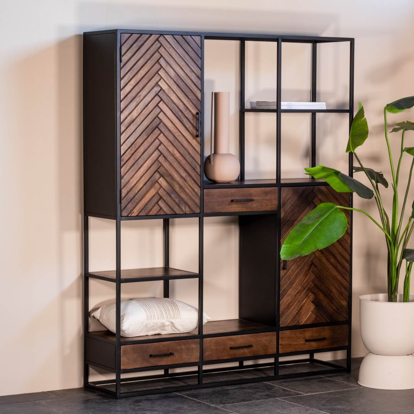 Maak kennis met de Vakkenkast Isa, een prachtige aanvulling op elk interieur dat de industriële stijl omarmt. Deze kast, vervaardigd uit een combinatie van mangohout en metaal, belichaamt een unieke mix van robuustheid en elegantie. De bruine kleur geeft het een warme uitstraling, terwijl het visgraatpatroon een verfijnde touch toevoegt. Met voldoende opbergruimte, inclusief 4 lades en meer dan 8 vakken, is deze kast niet alleen een eyecatcher maar ook uiterst functioneel.