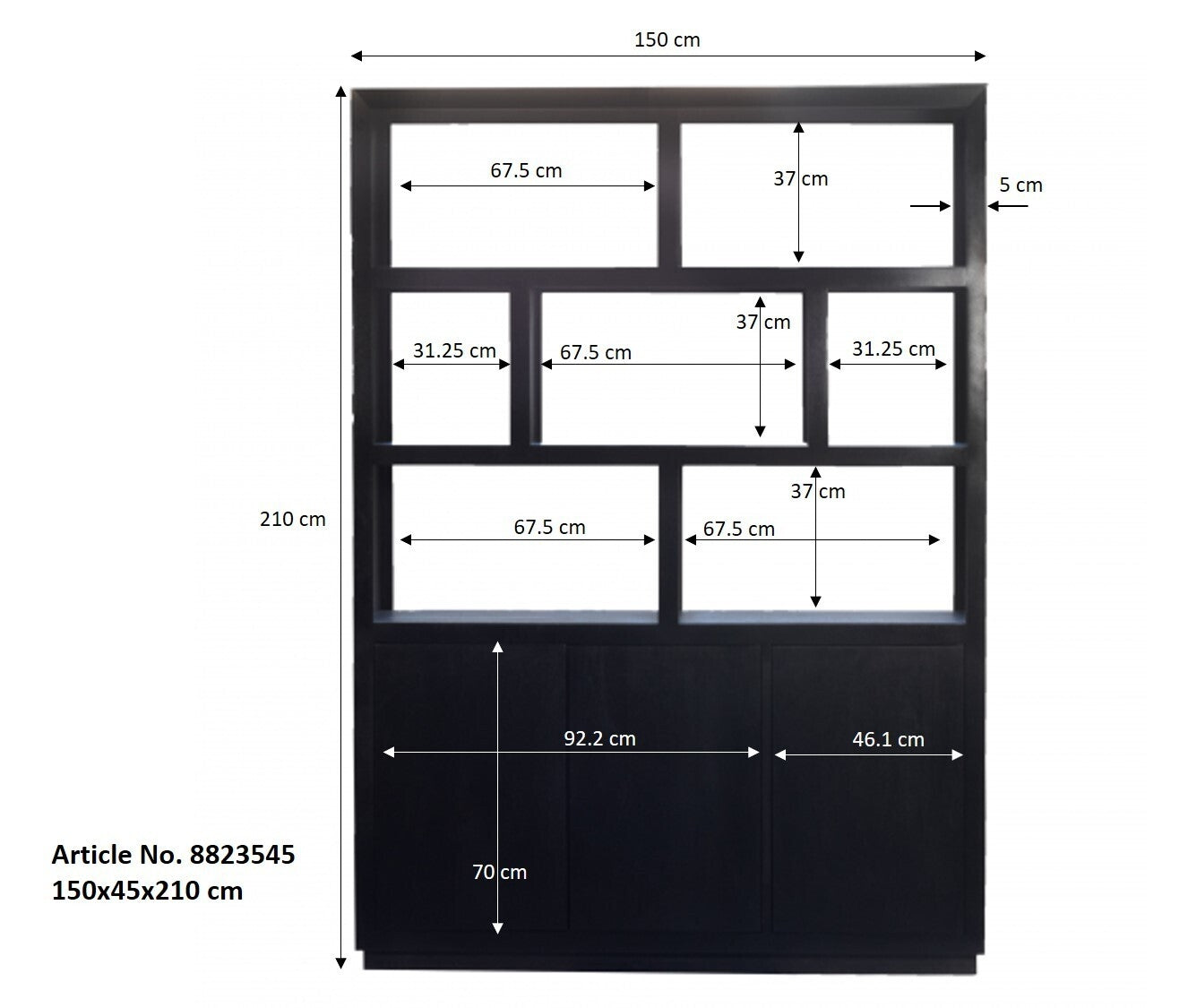 Vakkenkast Luxurious Zwart 150cm - Giga Meubel