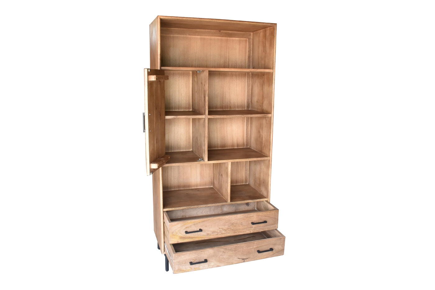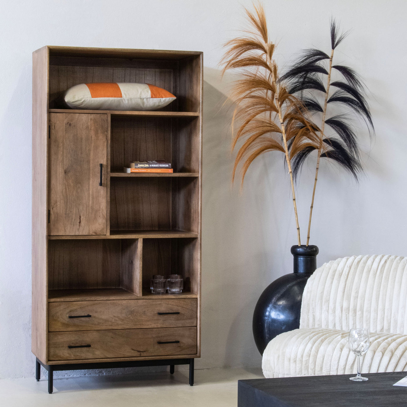 Materiaal: Deze wandkast is gemaakt van mangohout, wat bekend staat om zijn duurzaamheid en unieke textuur. Het mangohout geeft de kast een authentieke en natuurlijke uitstraling.