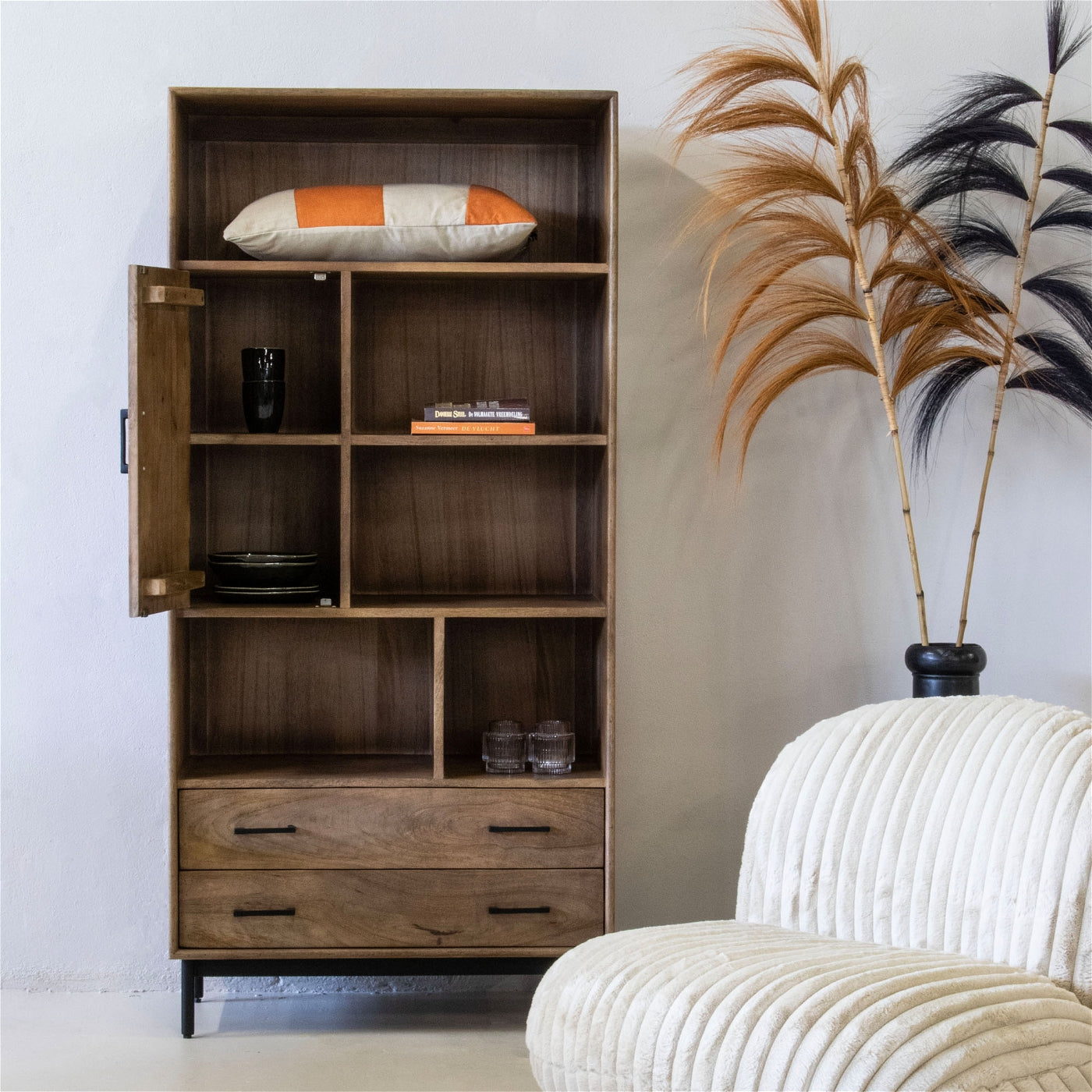 - Met planken en opbergruimte, is deze kast perfect om je persoonlijke items tentoon te stellen.