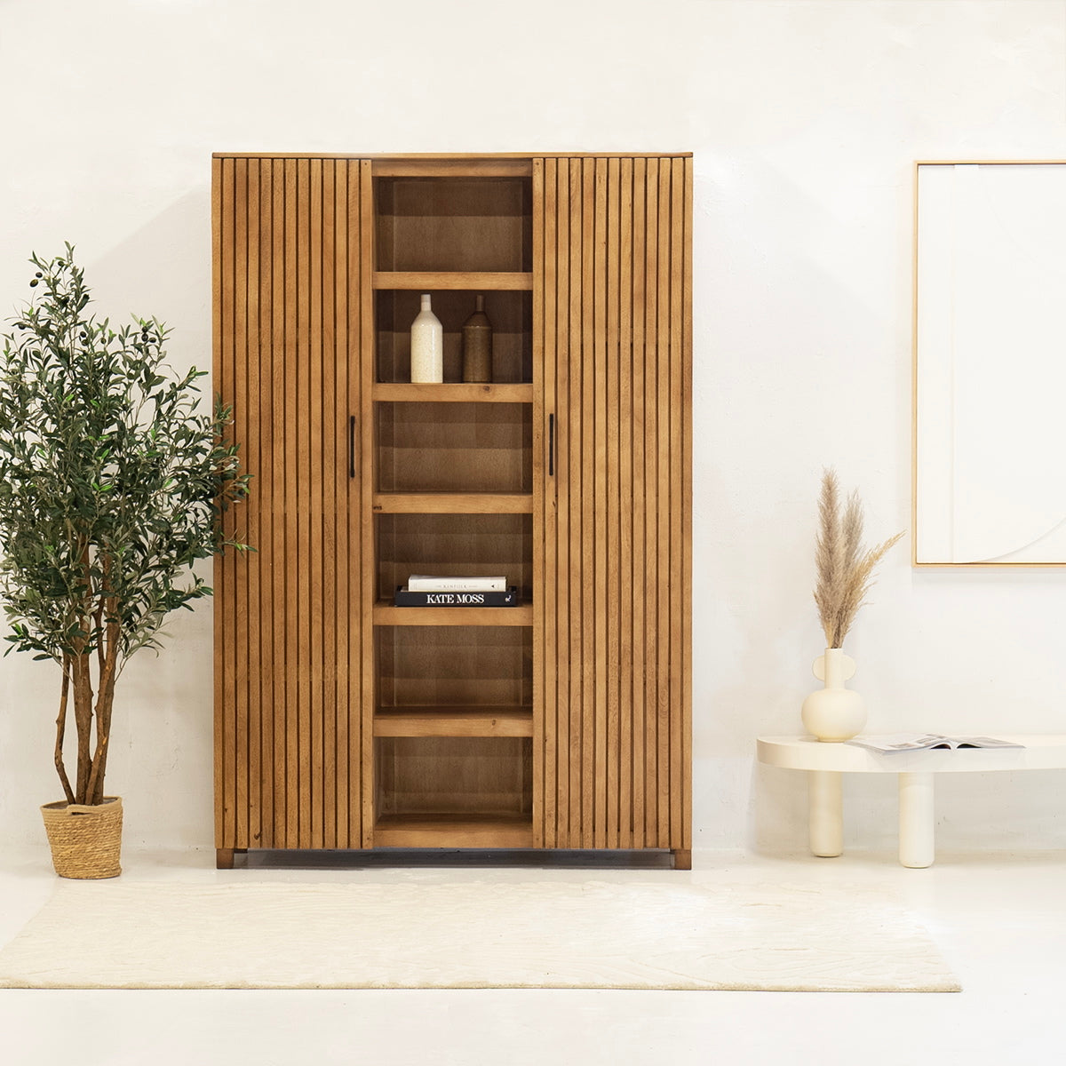 Materiaal: De Wandkast Tobi is volledig gemaakt van mangohout, bekend om zijn duurzaamheid en natuurlijke uitstraling. Dit materiaal draagt bij aan de landelijke sfeer van de kast en maakt elk exemplaar uniek.