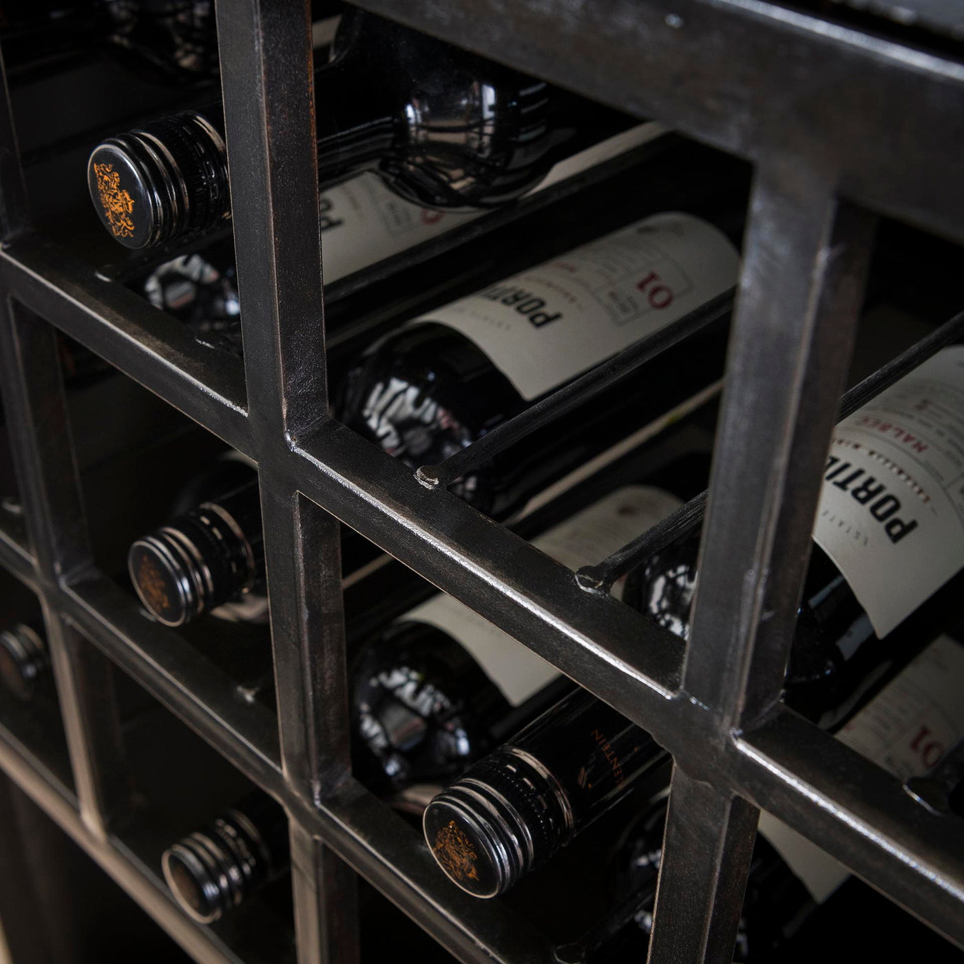 Materiaal: Deze wijnkast is volledig vervaardigd uit metaal, wat zorgt voor een stevige en duurzame constructie. Het metalen materiaal geeft de kast een stoere en industriële uitstraling die perfect past in een modern interieur.