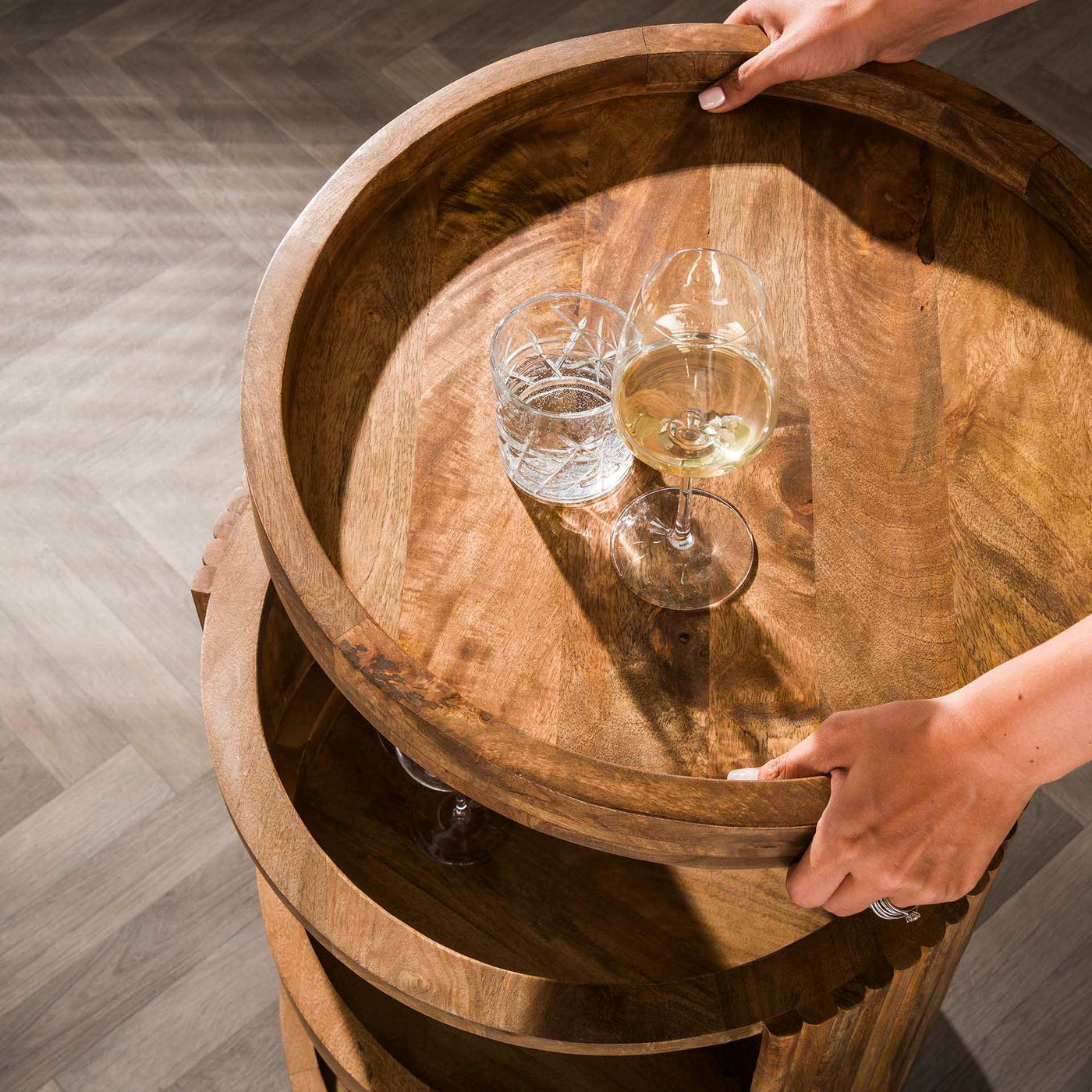 Wijntrolley Wave Massief Mango Zand - Giga Meubel