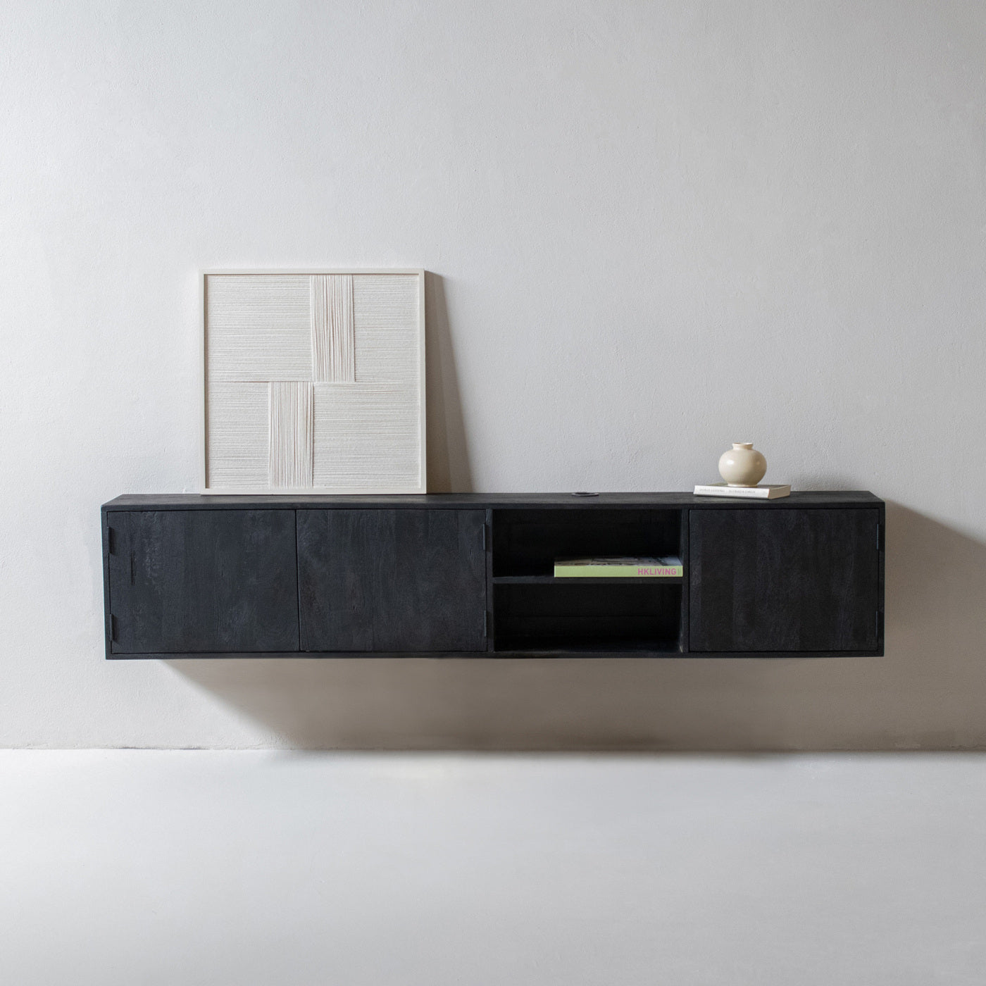 Giga Meubel - Zwevend Tv-Meubel 200cm Zwart - Mangohout - Kast Zen