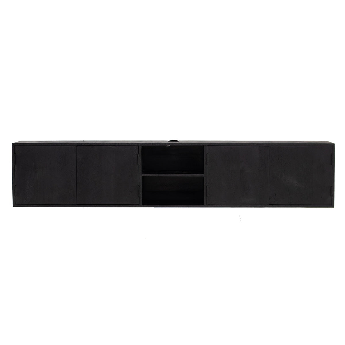 - Dit hangend tv-meubel is gemaakt van mangohout in combinatie met ijzer en is in het zwart afgewerkt.