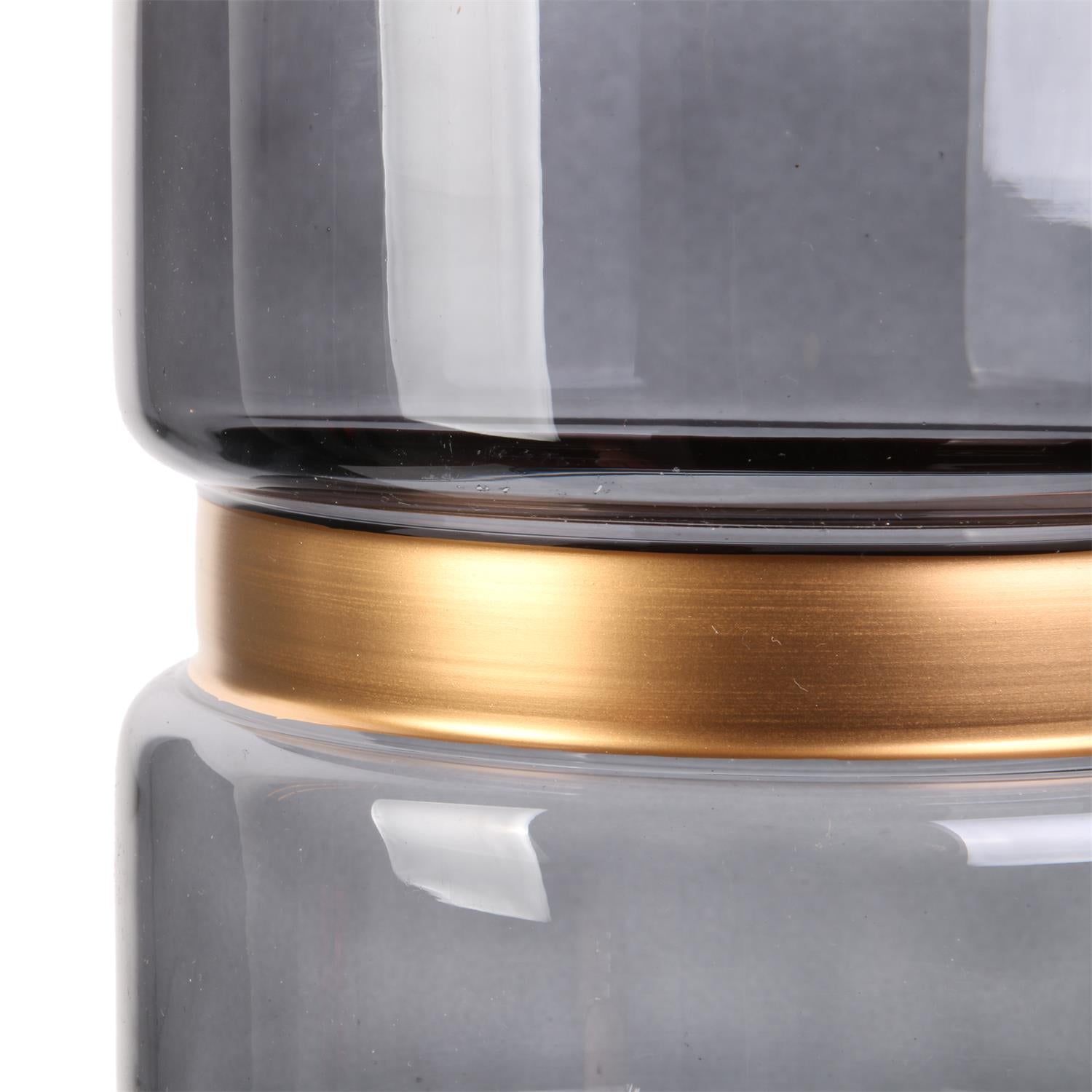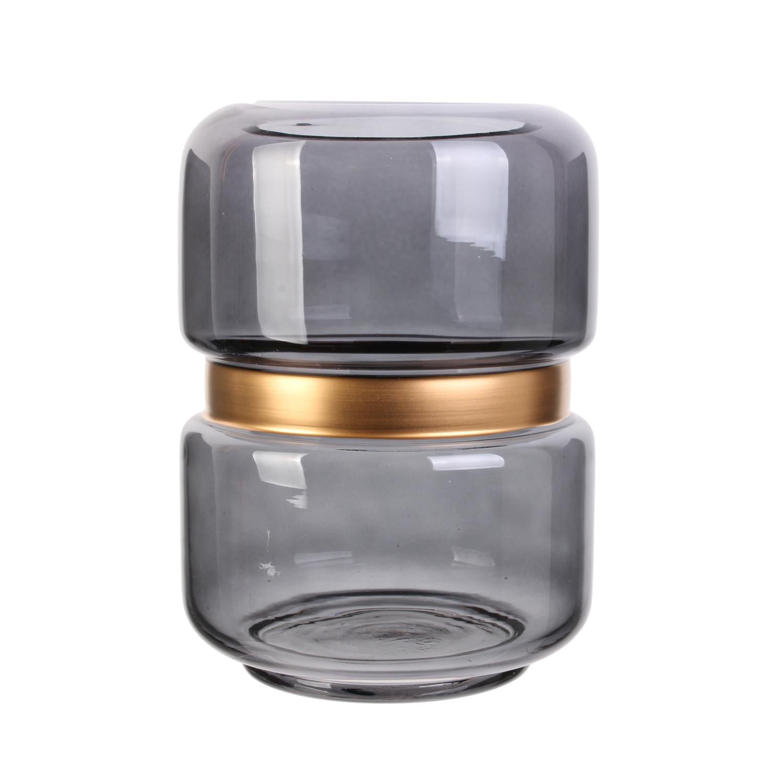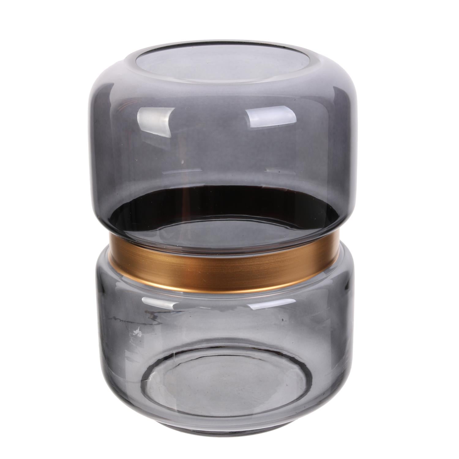Glazen vaas Bubble met Goudkleurige Bies - Smokey Grijs - Ø16 x H21 cm