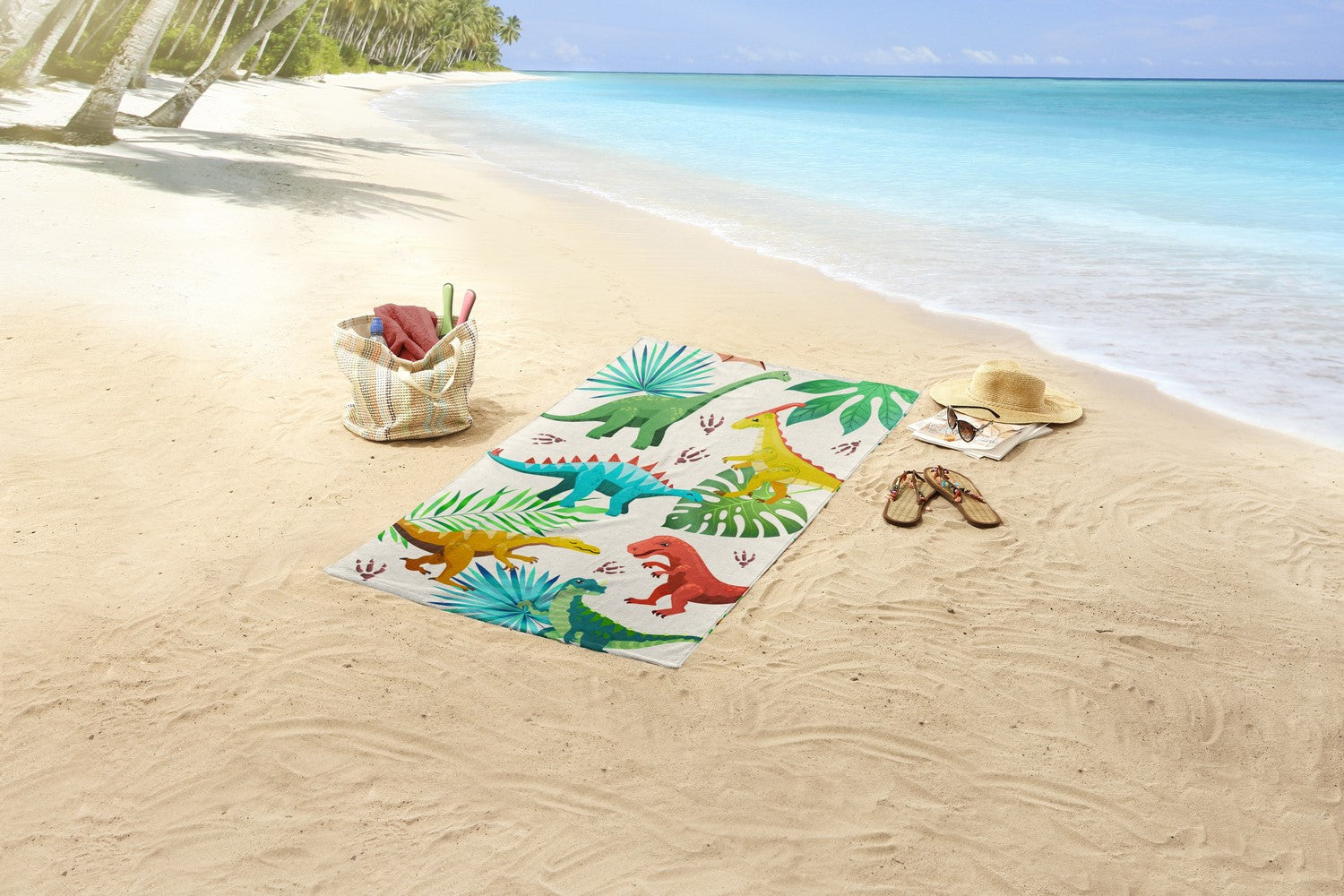 Good Morning Kinder Strandlaken Velours Dinos 75x150cm - multi
