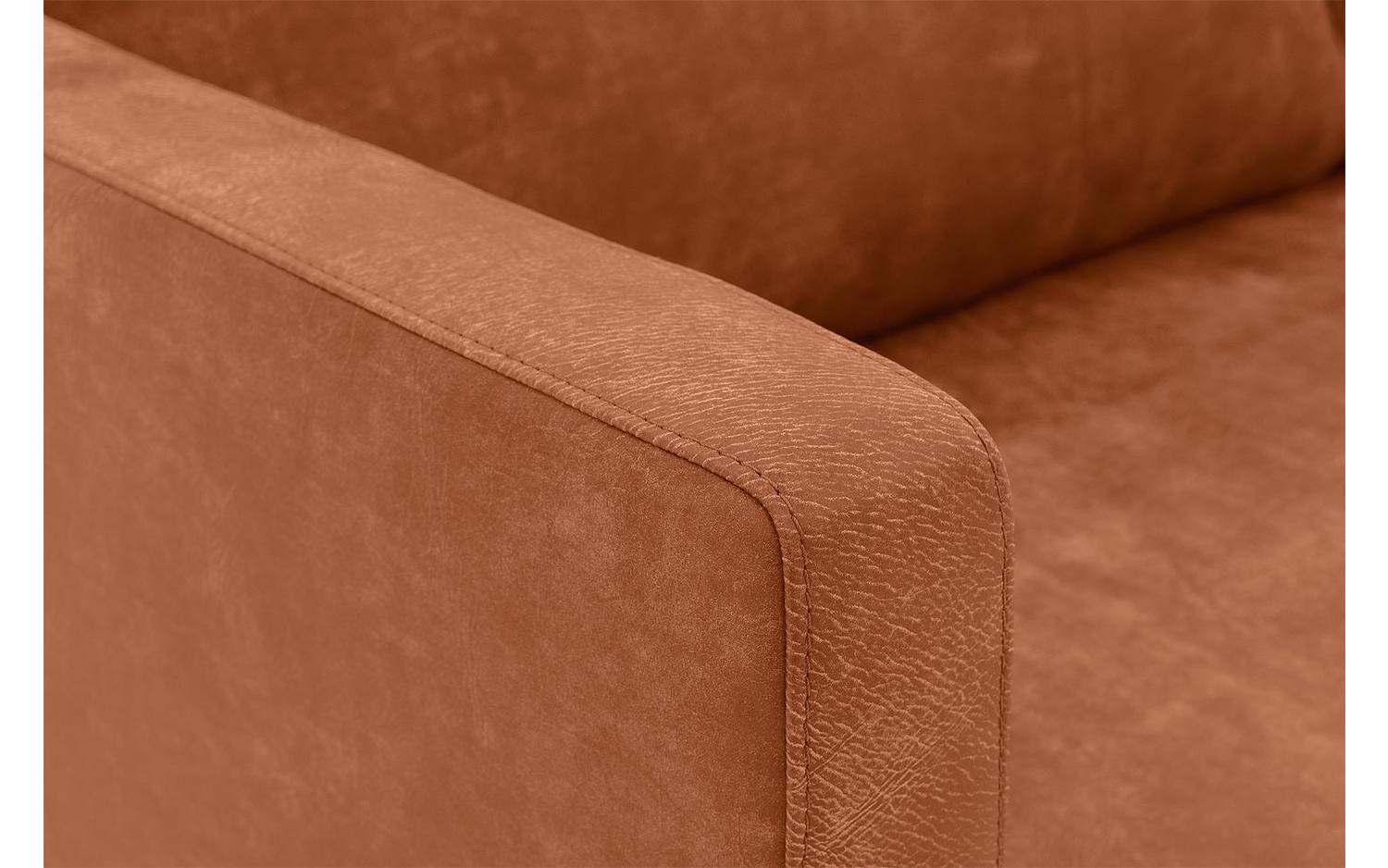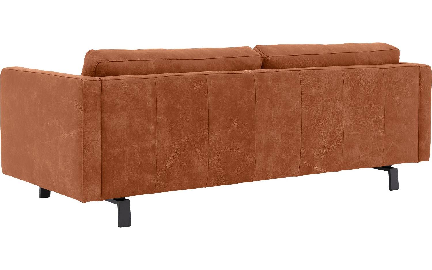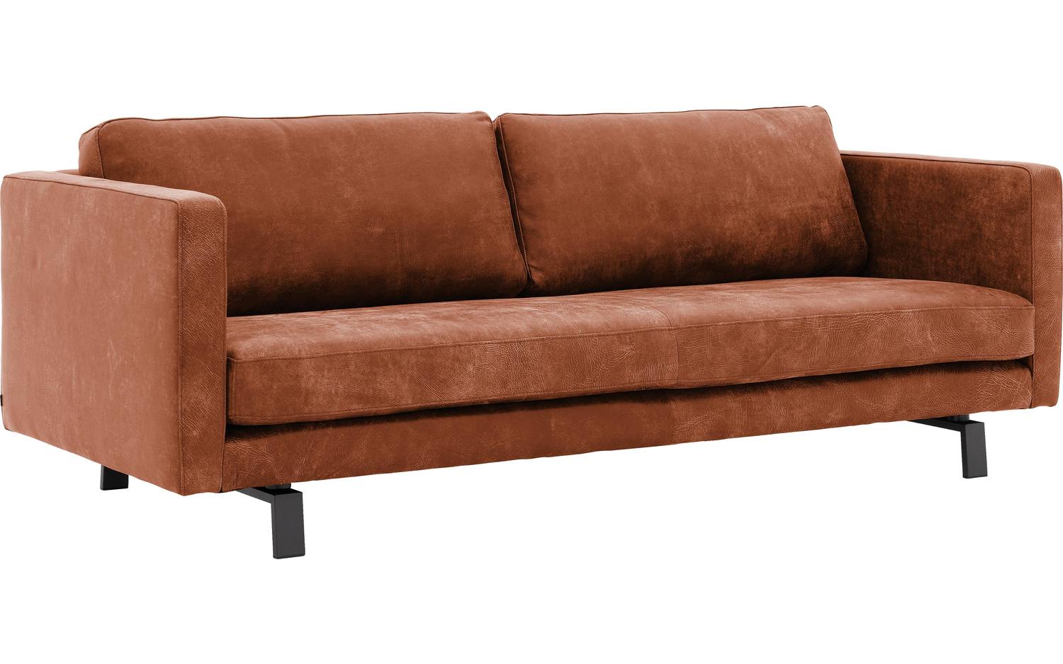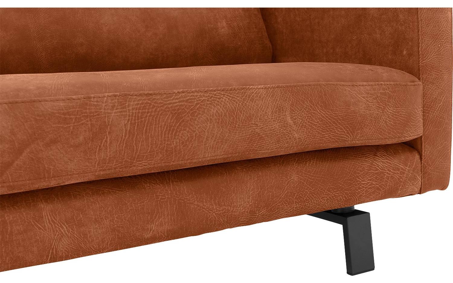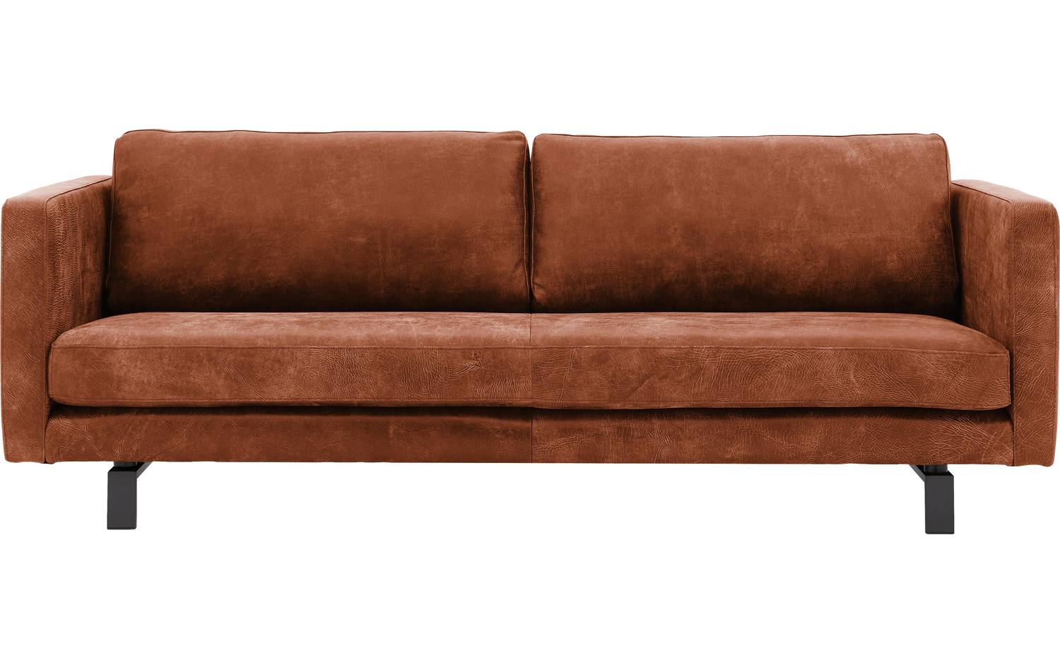 Het buffalo leer van deze bank heeft een warme cognackleur en is weinig bewerkt, waardoor het leer zijn natuurlijke uitstraling behoudt. De suède-achtige look voelt heerlijk zacht aan en wordt alleen maar mooier door de jaren heen. De sierlijke zwarte metalen poten (12 cm hoog) geven Nuance een stoere, industriële touch die perfect past in een urban interieur.