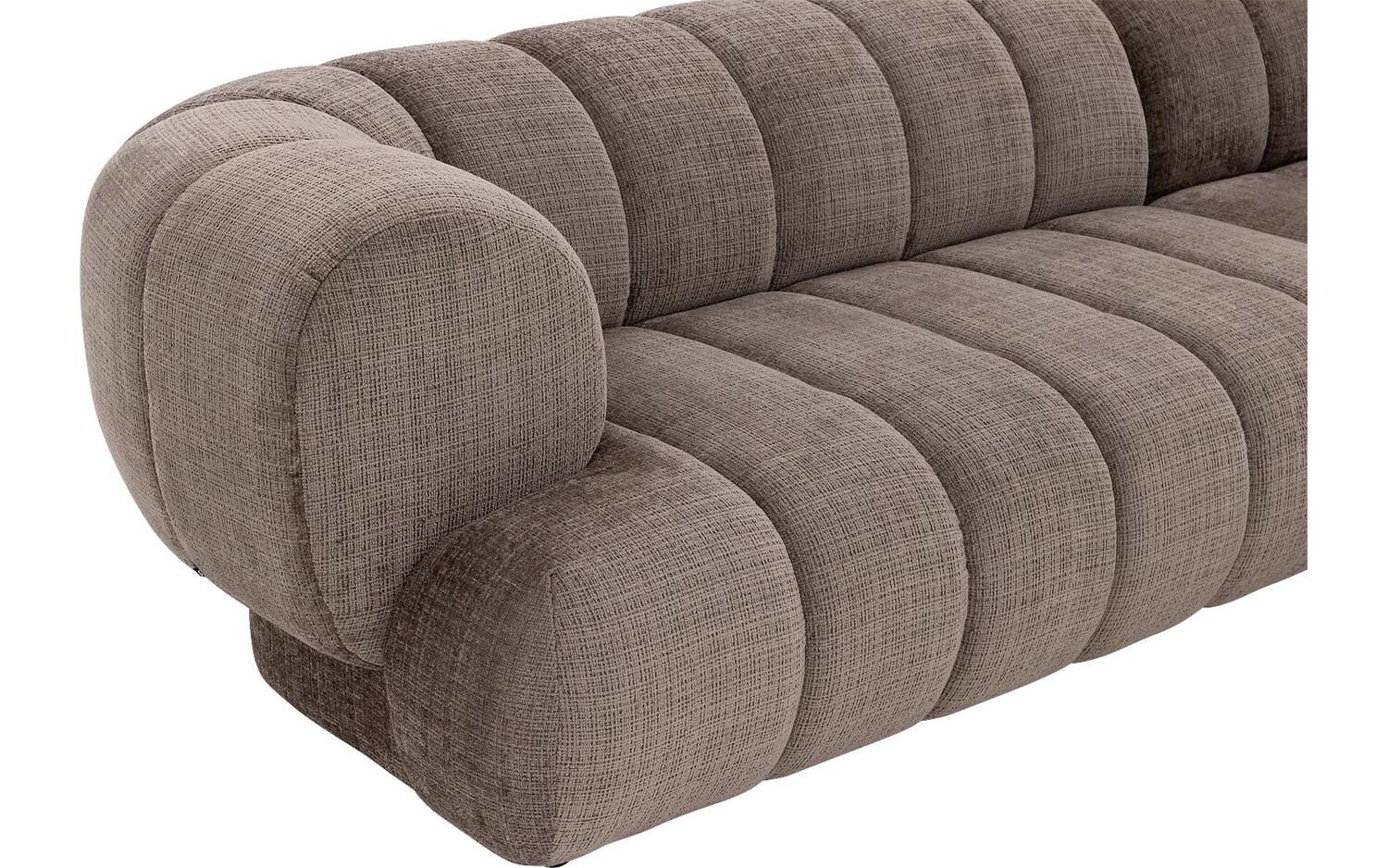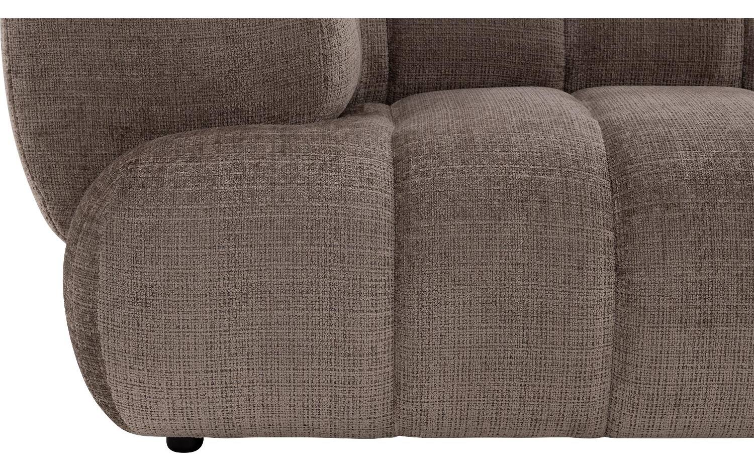 Weave is ontworpen met veel oog voor detail. De subtiele verticale stiksels in de fijn geweven taupe stof zijn niet alleen mooi, maar zorgen er ook voor dat de zitting zijn vorm behoudt. De kunststof poten in zwart staan iets naar achteren geplaatst, waardoor het lijkt alsof de bank nét boven de vloer zweeft.