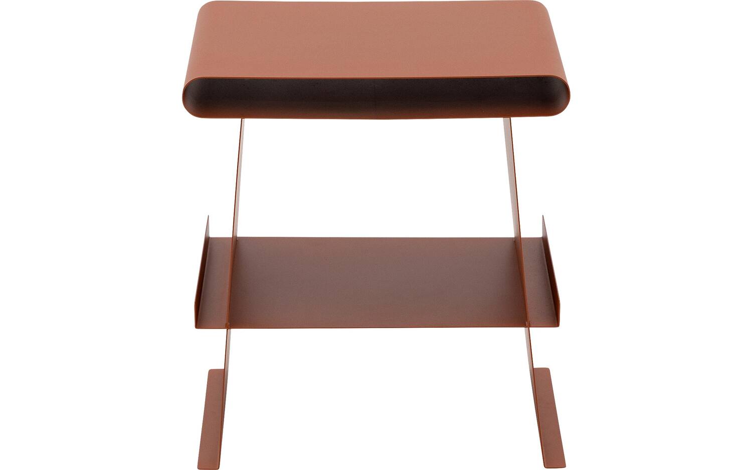 Bijzettafel Marten heeft een rechthoekige vorm met strakke lijnen. Het metalen frame in roestkleur geeft de tafel een warme, industriële look die opvalt zonder dominant te zijn. Perfect als accent in je woonkamer of slaapkamer.