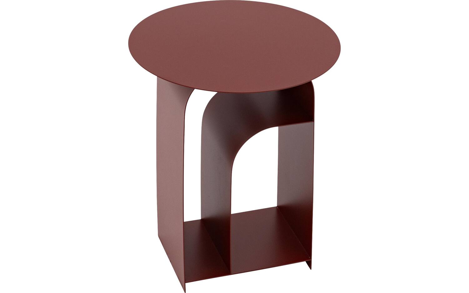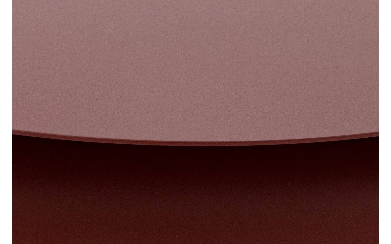 Bijzettafel Minna heeft een ronde vorm en valt op door zijn levendige bordeauxrode kleur. Het metalen frame geeft de tafel een moderne, industriële look die toch warm aanvoelt door de rijke kleur.