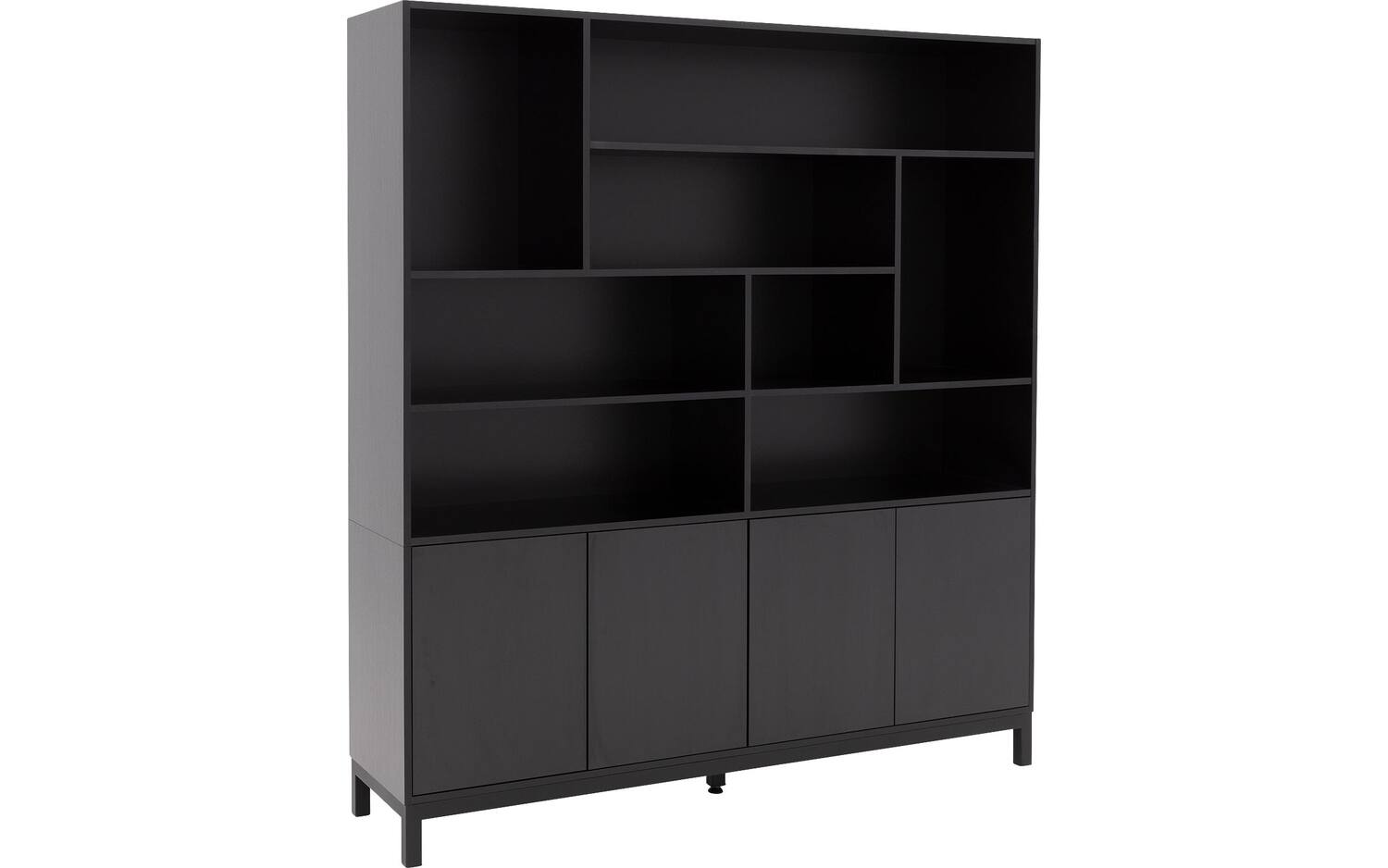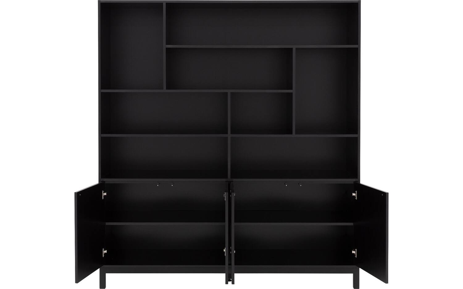 - Praktische indeling met open vakken en opbergruimte achter deuren
