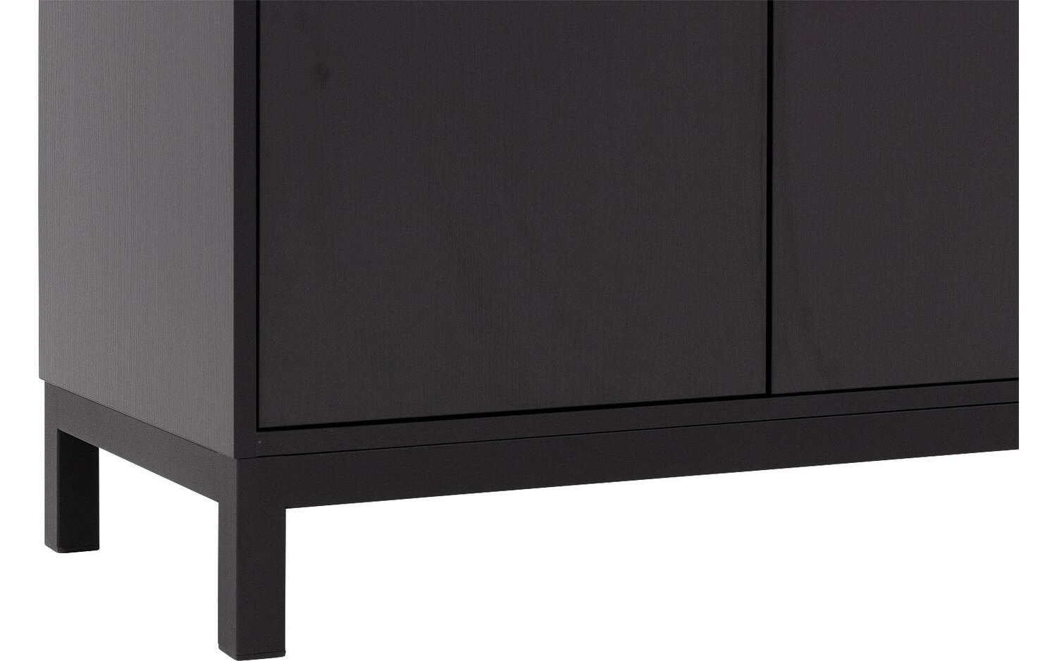 Het hoogwaardige melamine materiaal van buffetkast Valencia is niet alleen mooi om te zien, maar ook praktisch in gebruik. De zwarte kleur met houtstructuur is vlekbestendig en makkelijk schoon te houden - ideaal voor dagelijks gebruik.